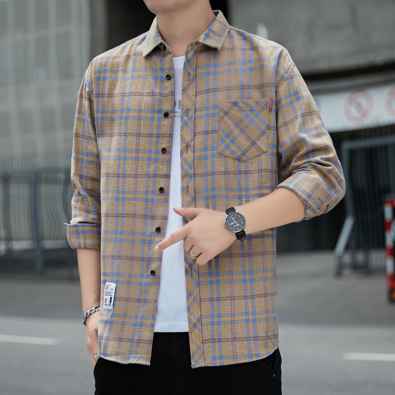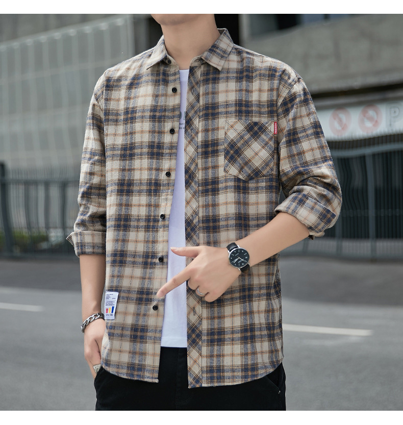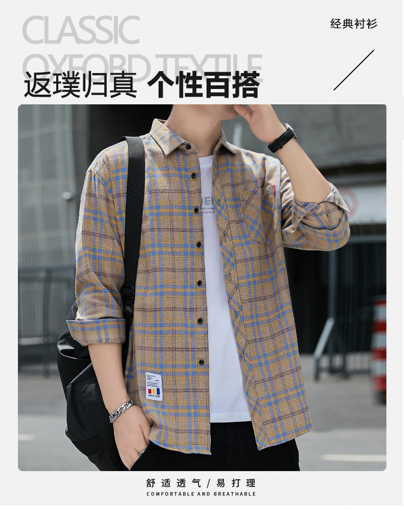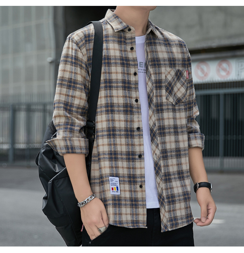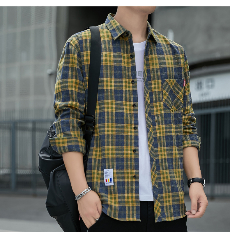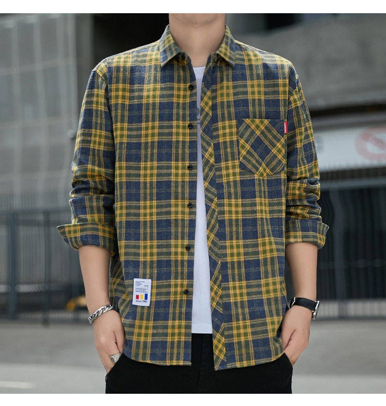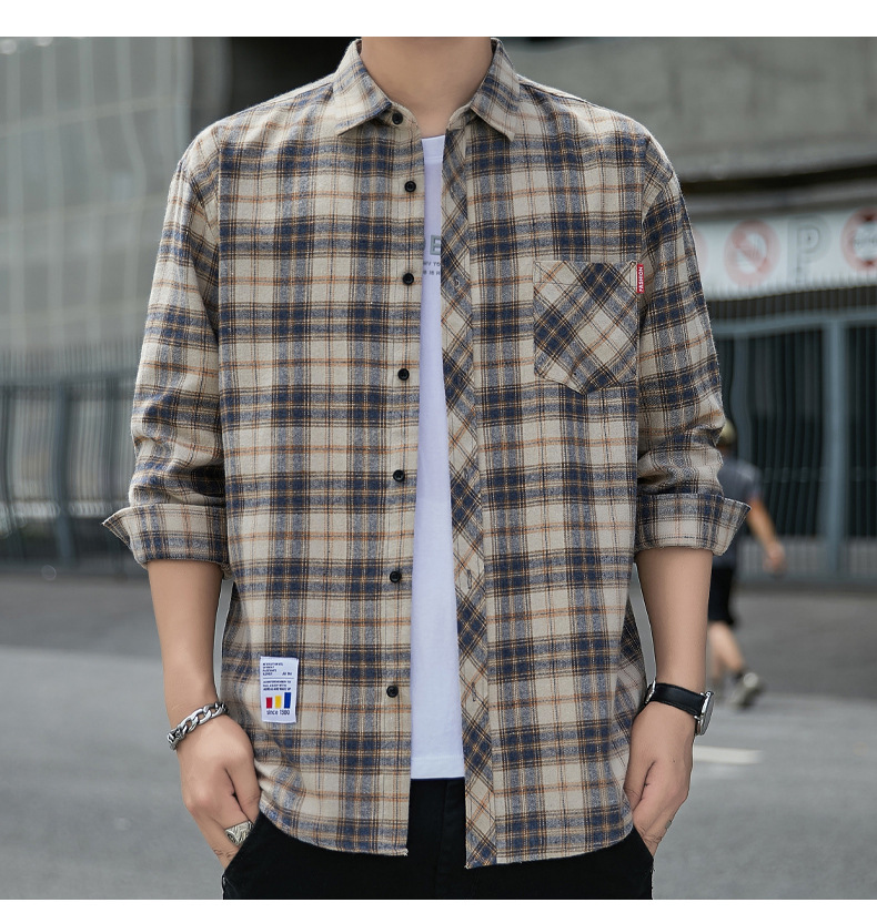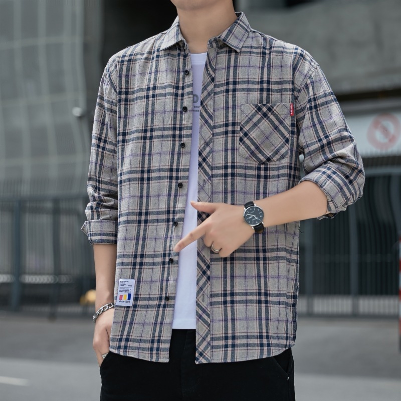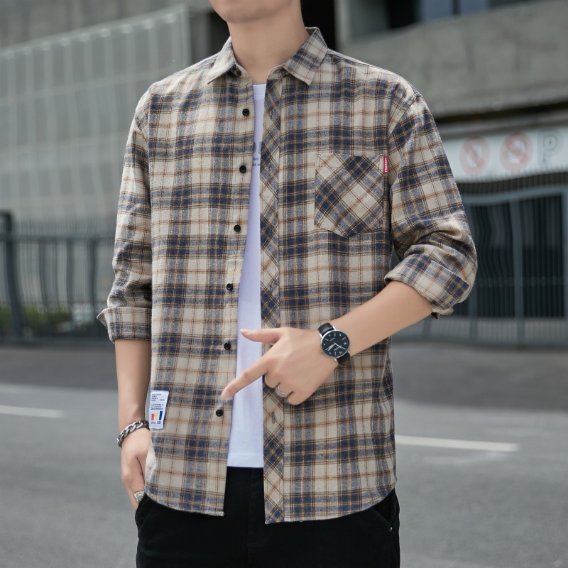 남성용 루즈한 체크 무늬 셔츠, 봄, 가을 코트, 학생용 긴팔 셔츠, 캐주얼 남성용 상의, 남성용 드롭 배송스토어 가기