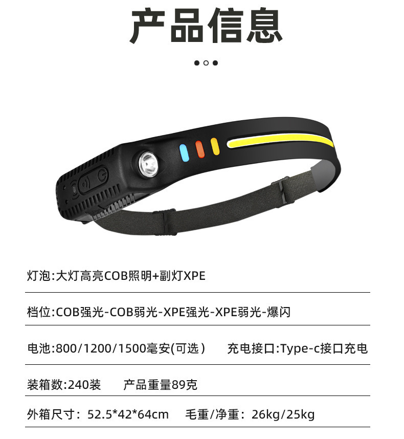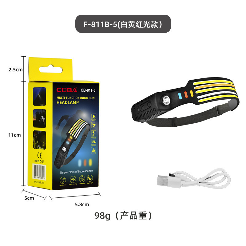 국경 간 유도 헤드 라이트 야외 사이클링 라이트 USB 충전 야간 주행 조명 LED 강한 빛 헤드 라이트 야간 낚시 조명