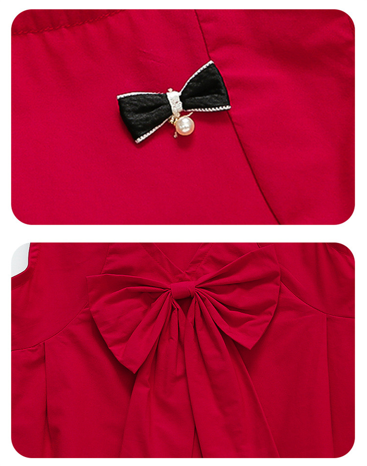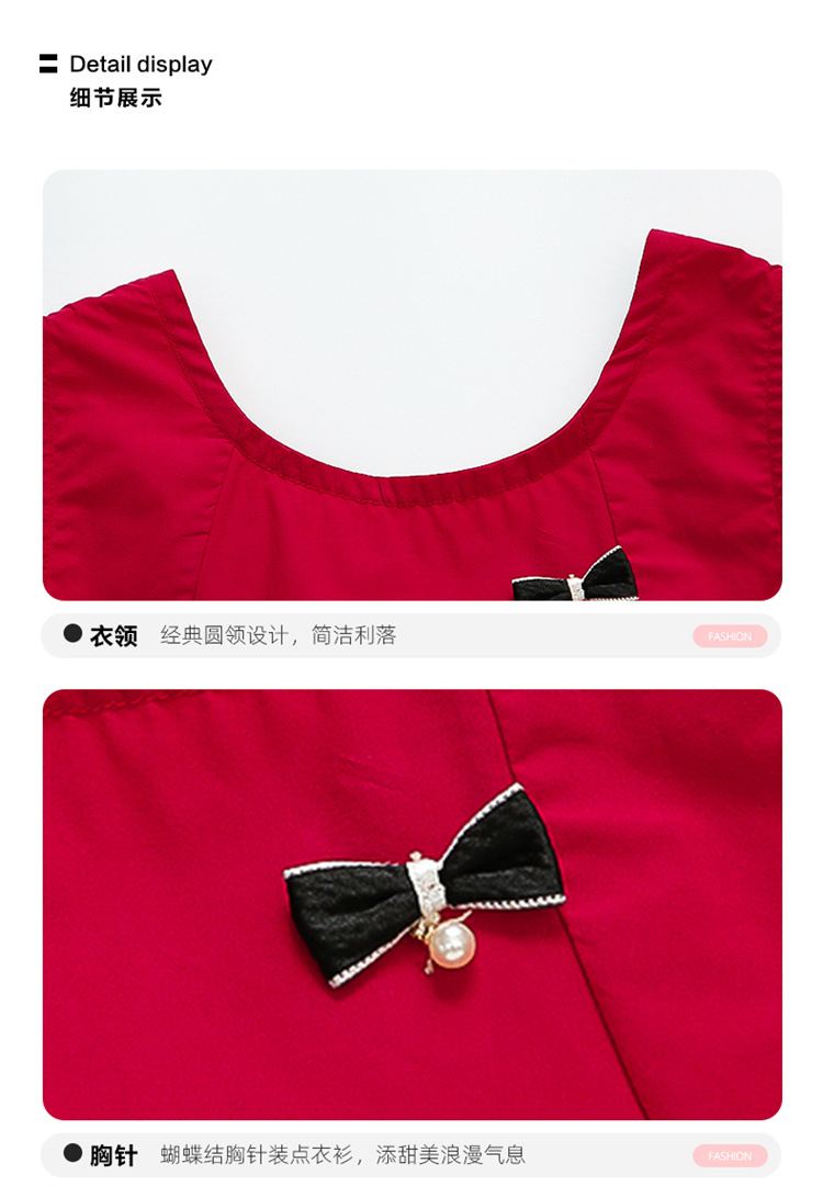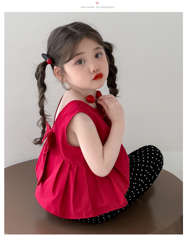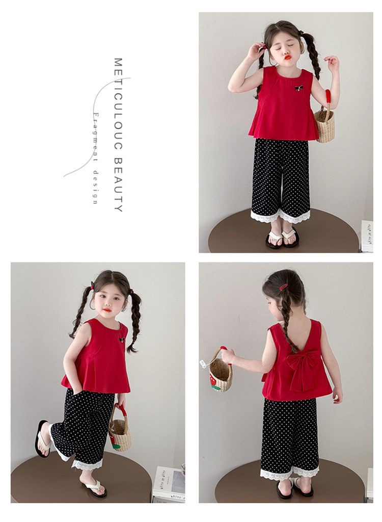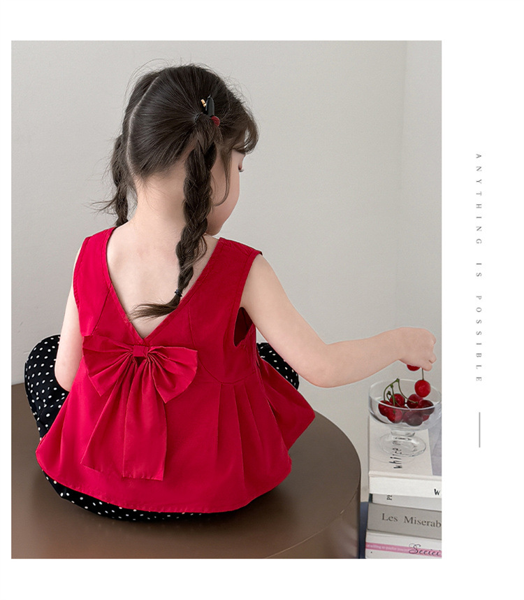 소녀의 빨간 활 폴로 점 바지 세트 2025 여름 새로운 패션 소녀의 세련된 투피스 여름 원피스스토어 가기