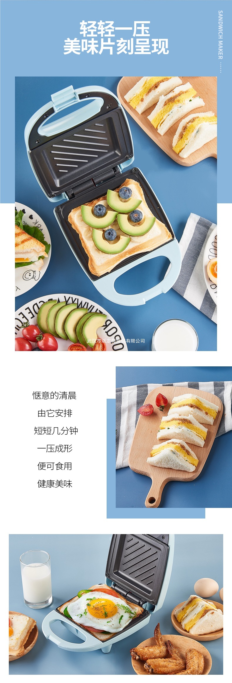 지능형 샌드위치 메이커, 가정용 인터넷 연예인 가벼운 아침 식사 메이커, 샌드위치 전기 베이킹 팬, 토스트 기계, 빵 프레스 및 베이킹 기계