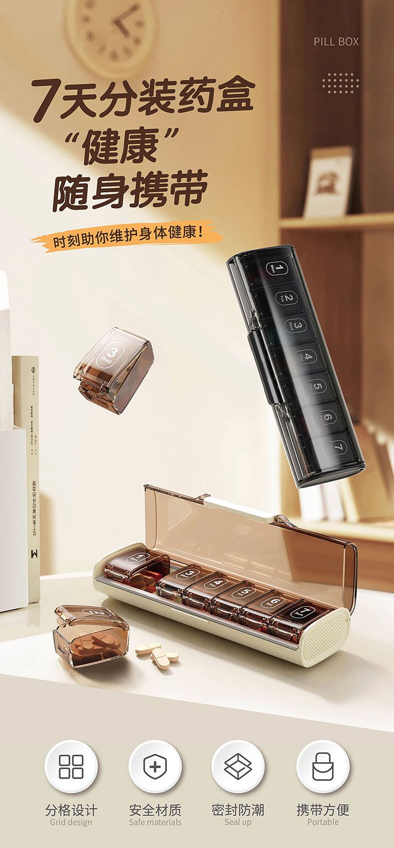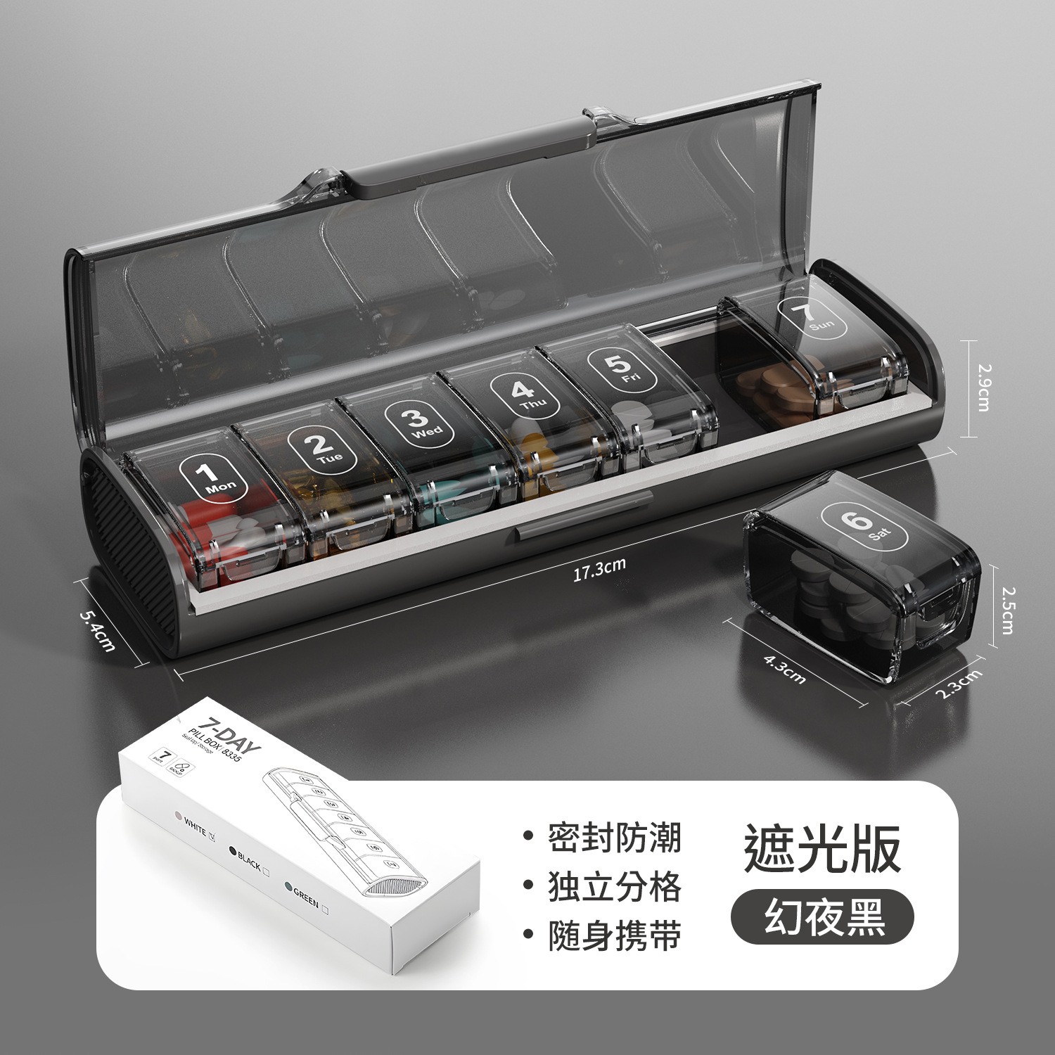 국경 간 약 상자 주 7 일 7-구획 휴대용 밀봉 어두운 포장 약 신제품 대용량 약 디스펜서스토어 가기