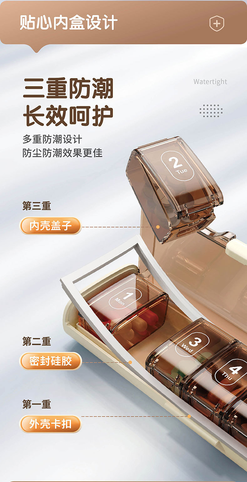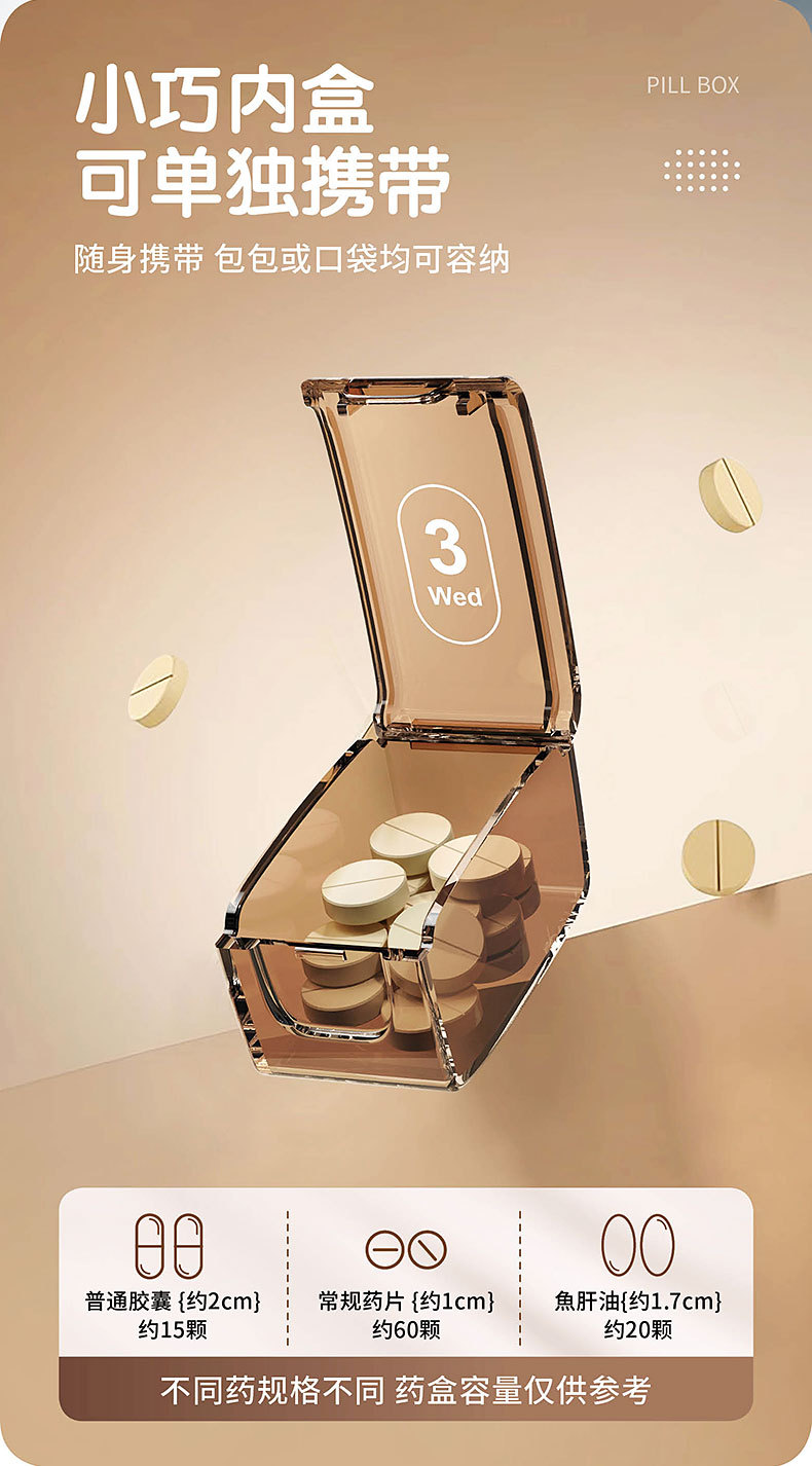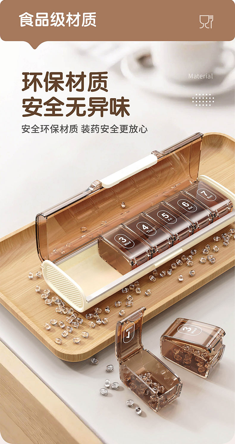 국경 간 약 상자 주 7 일 7-구획 휴대용 밀봉 어두운 포장 약 신제품 대용량 약 디스펜서