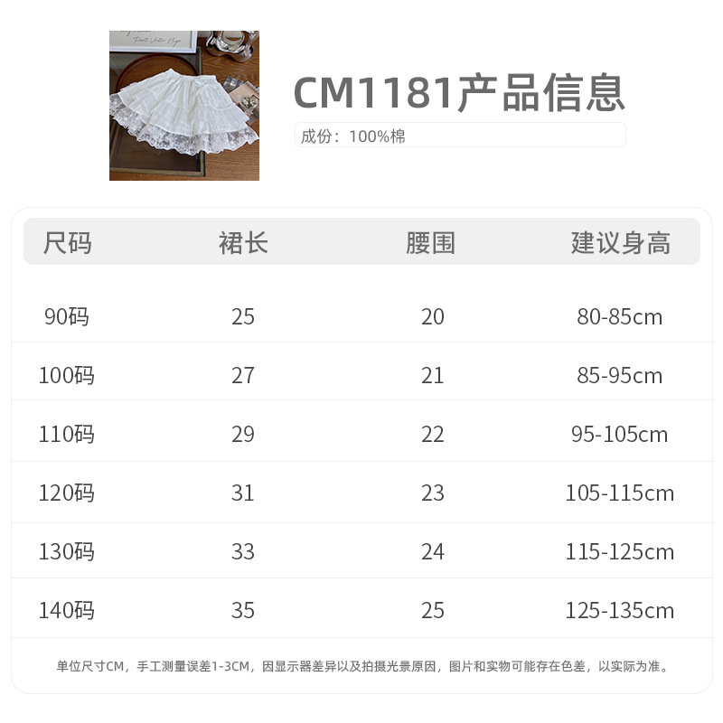 여자 한국 스커트 여름 새 스타일 아기 소녀 달콤한 기질 솔리드 컬러 레이스 스커트 CM1181