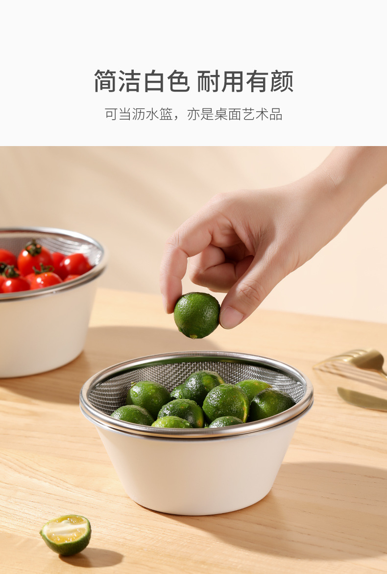 • [화이트 세트] 16cm 대형 304 스테인레스 스틸 1세트 [메쉬바구니 부속품 제외]