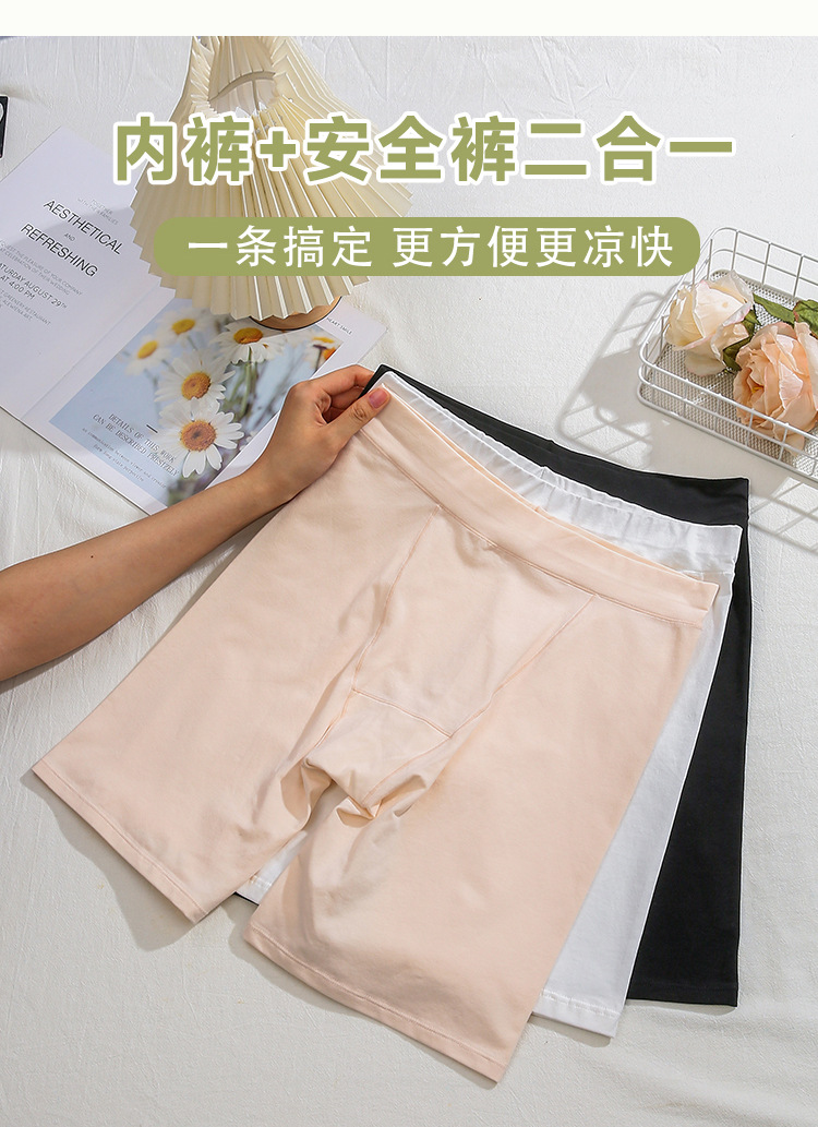 여성용 엑스트라 롱 가랑이 순면 항균 대형 안전 바지, 노출 방지 레깅스, 이너웨어, 투인원 여름용, 컬링 없음, 얇음스토어 가기