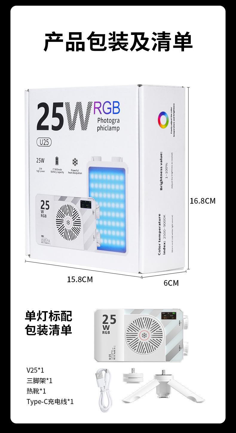 • U25 포켓 라이트(25W) RGB+ 데스크탑 소형 삼각대
