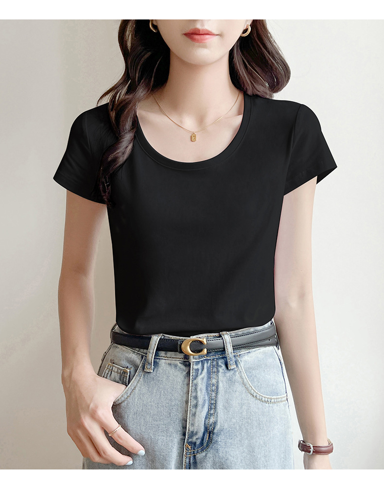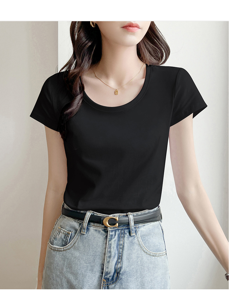 화이트 티셔츠 여성 여름 반팔 슬림핏 오른쪽 어깨 인기 탑 2025 새로운 스타일 이너 레이어드 셔츠 티셔츠 트렌디스토어 가기