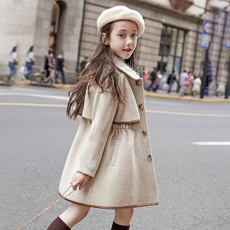 여아 코트 25개 새로운 한국 스타일 외국 스타일 퀼팅 솔리드 컬러 공주 중대형 아동 허리 양면 모직 코트스토어 가기