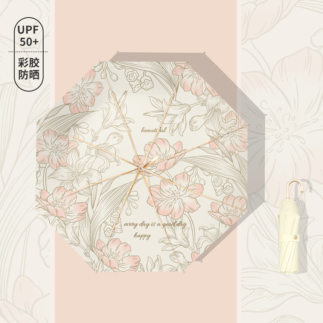 양산 우산 안티 자외선 여성 레트로 태양 우산 맑고 비 이중 목적 컬러 접착제 태양 보호 우산 접히는 프랑스 스타일 작은 우산스토어 가기