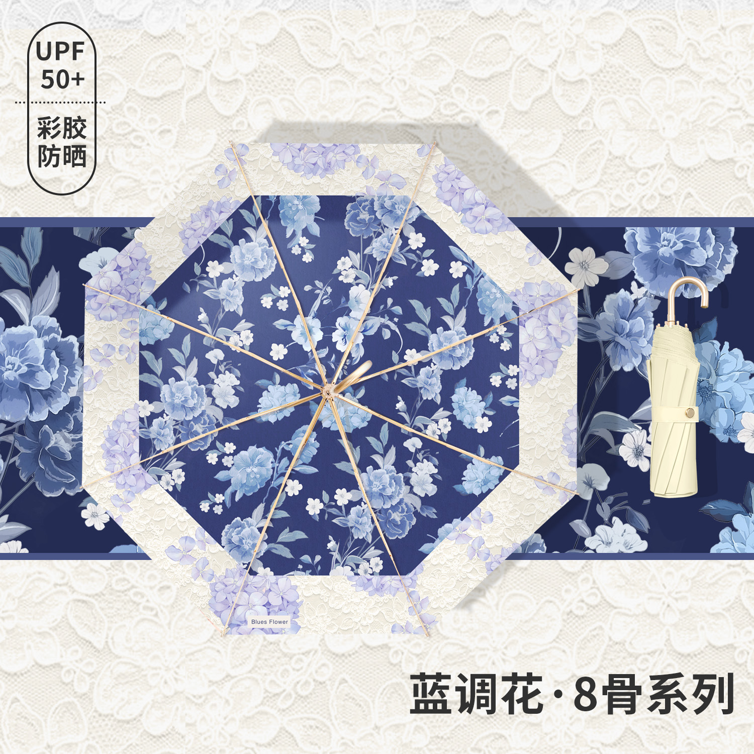 양산 우산 안티 자외선 여성 레트로 태양 우산 맑고 비 이중 목적 컬러 접착제 태양 보호 우산 접히는 프랑스 스타일 작은 우산