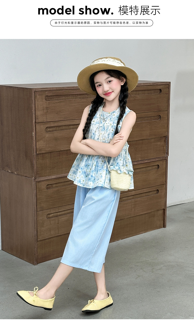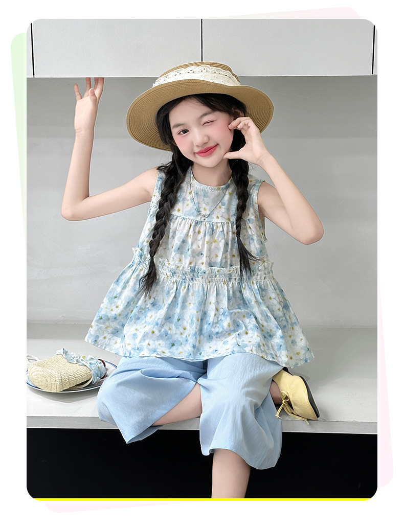 여아 정장 여름 옷 2025 새로운 어린이 여름 인터넷 연예인 유행 와이드 팬츠 여아 민소매 투피스 세트 서양식스토어 가기