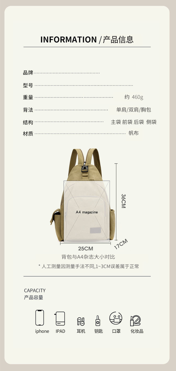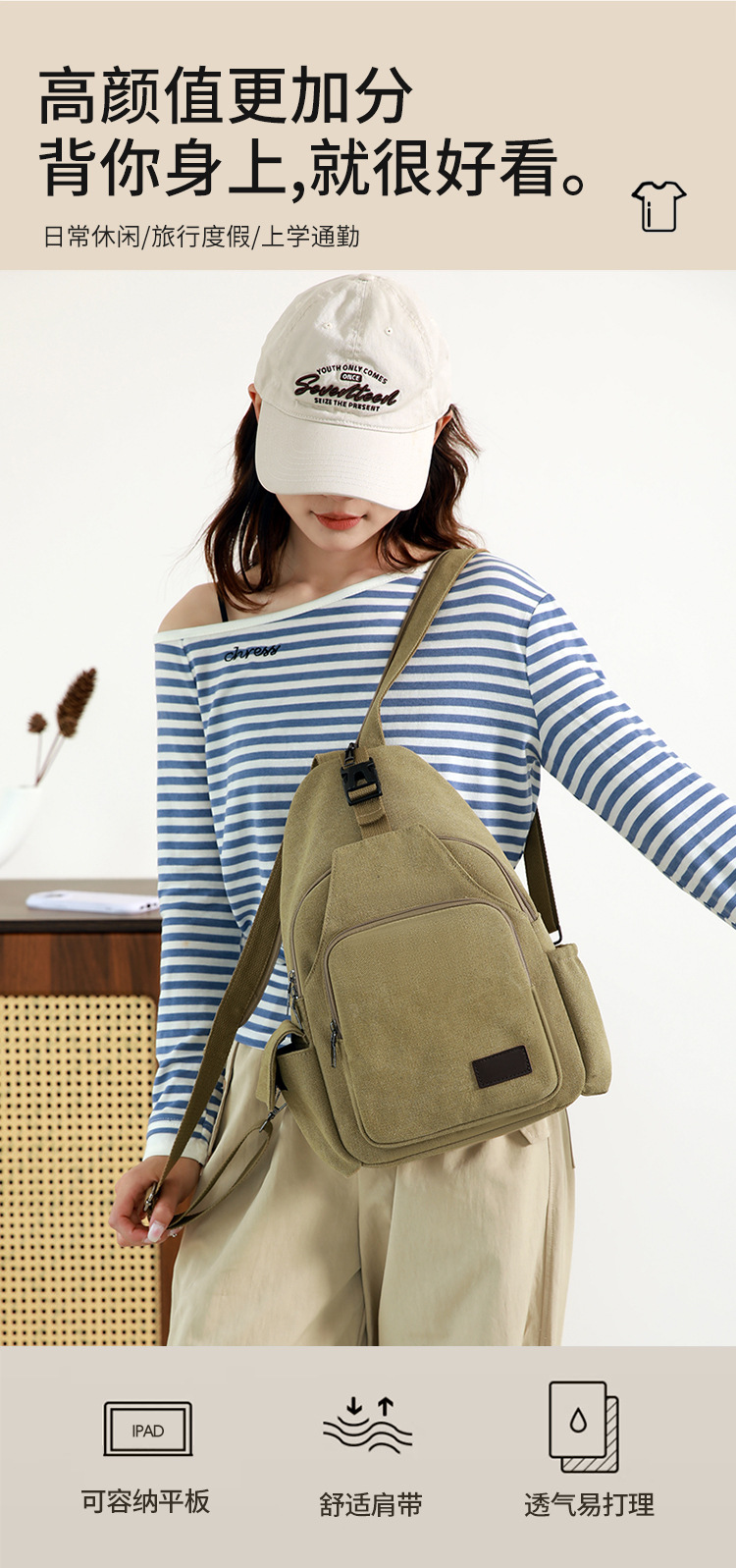 2016 한국어 버전 새로운 캐주얼 캔버스 배낭 캔버스 가슴 가방 다목적 야외 대각선 가방 대용량 새로운스토어 가기