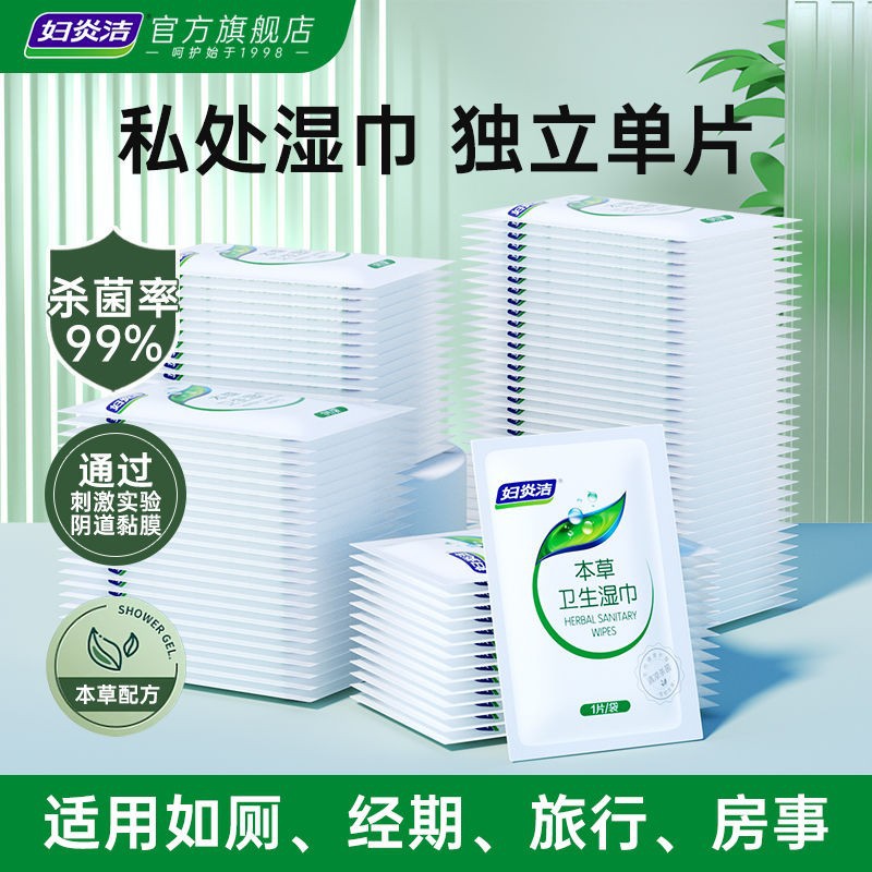 Fuyanjie 물티슈 여성 생리 기간을 위한 허브 위생 물티슈 개인 관리 청소 물티슈 1팩 독립 팩