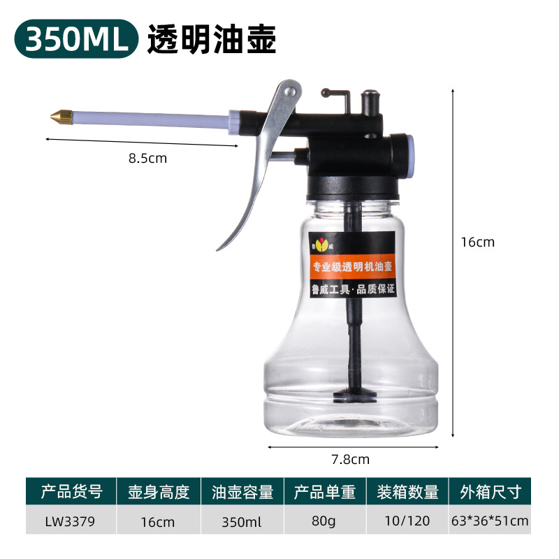 Luwai Tools 투명 오일 주전자 350ml 황동 팁 고압 오일 주전자 플라스틱 기어 오일 주입 주전자스토어 가기