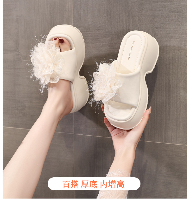 9017-25 두꺼운 밑창 고조 꽃 한 단어 미끄럼 방지 슬리퍼 여성의 2025 년 여름 새로운 머핀 캐주얼 슬리퍼스토어 가기