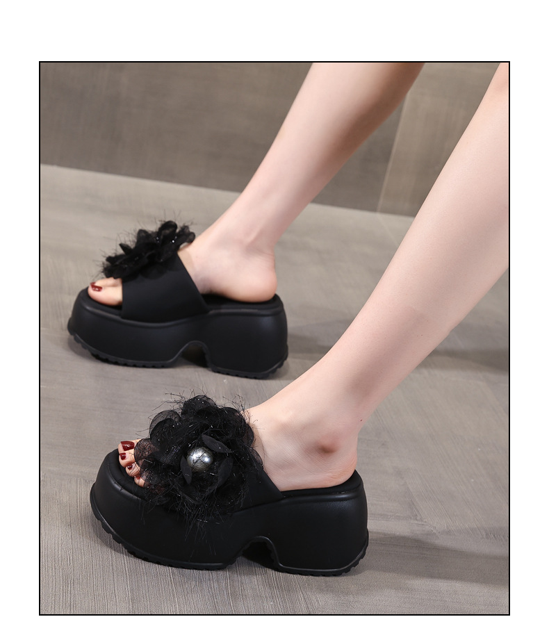 9017-25 두꺼운 밑창 고조 꽃 한 단어 미끄럼 방지 슬리퍼 여성의 2025 년 여름 새로운 머핀 캐주얼 슬리퍼