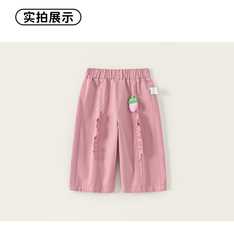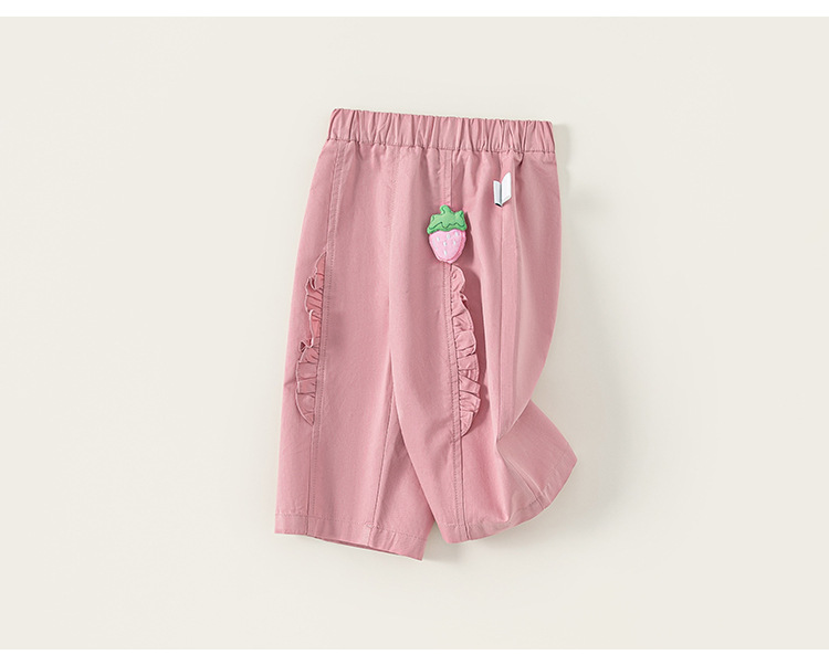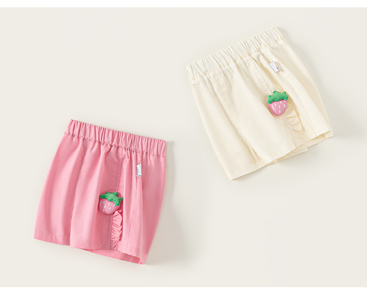Bangxuan 소녀 여름 새 반바지 어린이 단색 레이스 바지 아기 소녀 딸기 바지 느슨한 캐주얼 바지