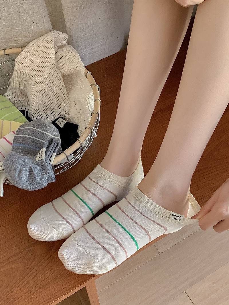 한국식 천 라벨 줄무늬 뼈없는 보트 양말 여성의 여름 얇은 통기성 보이지 않는 얕은 입면 양말 실리콘 미끄럼 방지 힐스토어 가기
