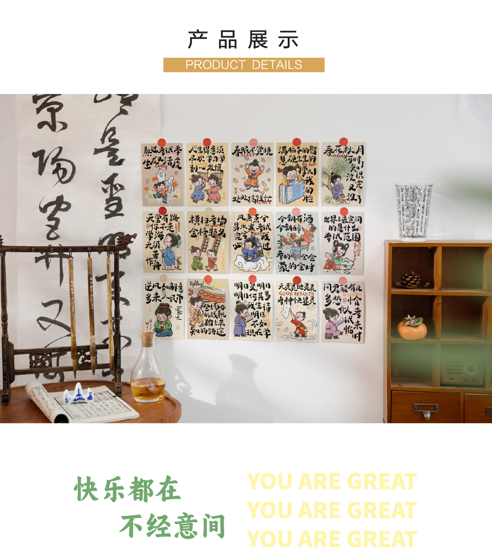고교 입시를 위한 카오신의 출현, 중국 스타일의 텍스트가 포함된 엽서, 고교 입시 영감 축복, 졸업 장식 카드, 벽 스티커스토어 가기