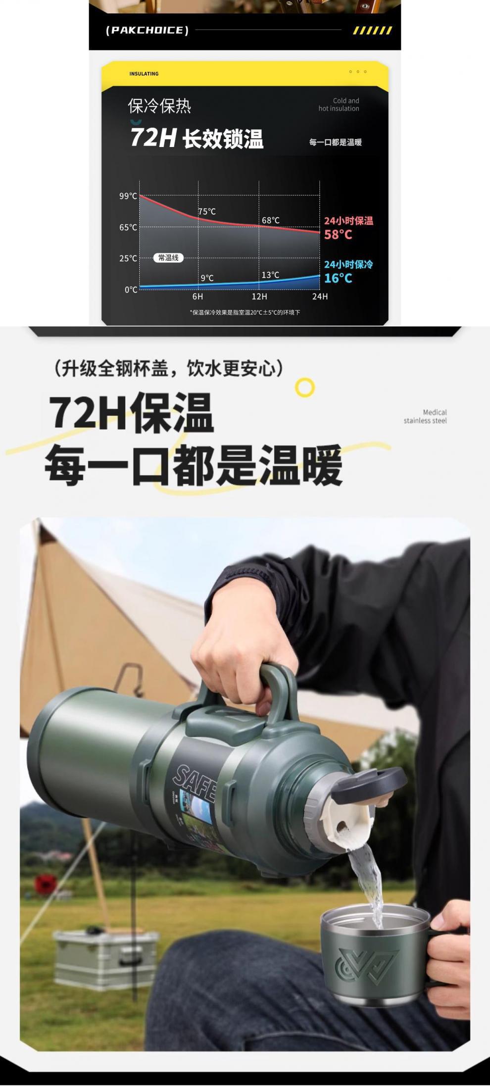 보온병 대형 용량 5000 보온병 야외 스포츠 남자 주전자 316L 워터 컵 공식 보온병스토어 가기