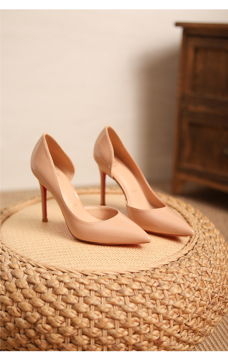 사이드 빈 블랙 하이힐 2025 새로운 스타일의 나이트 클럽 전문 포인티드 토 아름다운 스틸레토 펌프 여성용 특허 가죽 신발스토어 가기