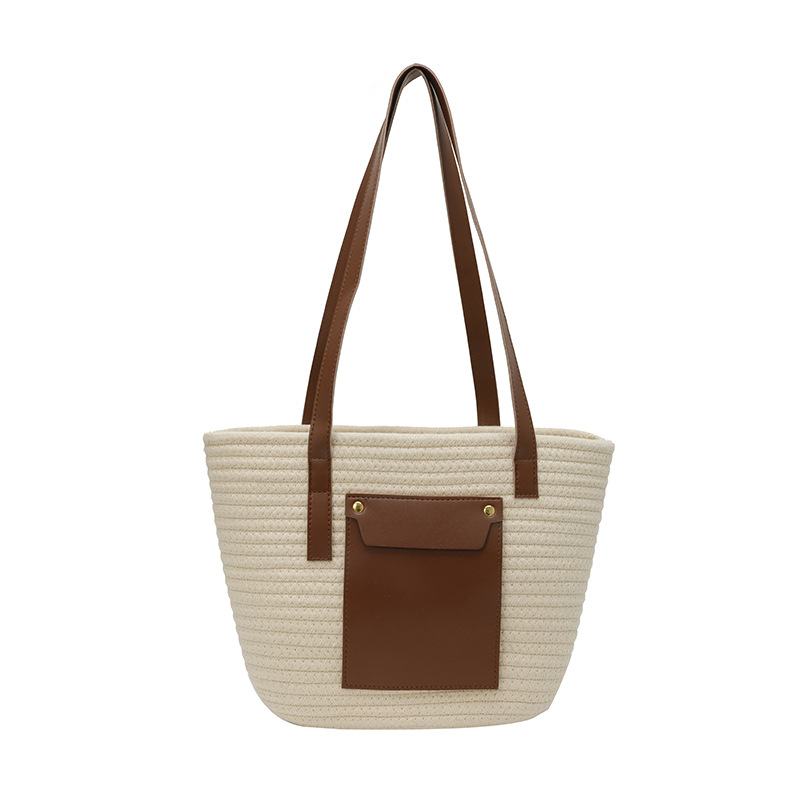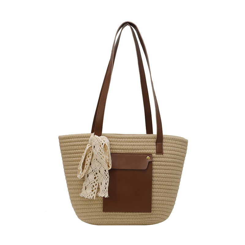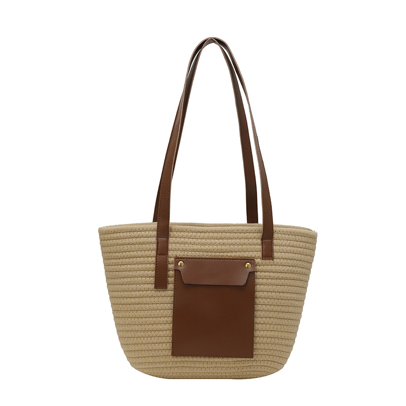대용량 밀짚 가방 여성의 2025 새로운 유행 봄과 여름 패션 통근 어깨 가방 올 매치 핸드 토트 백