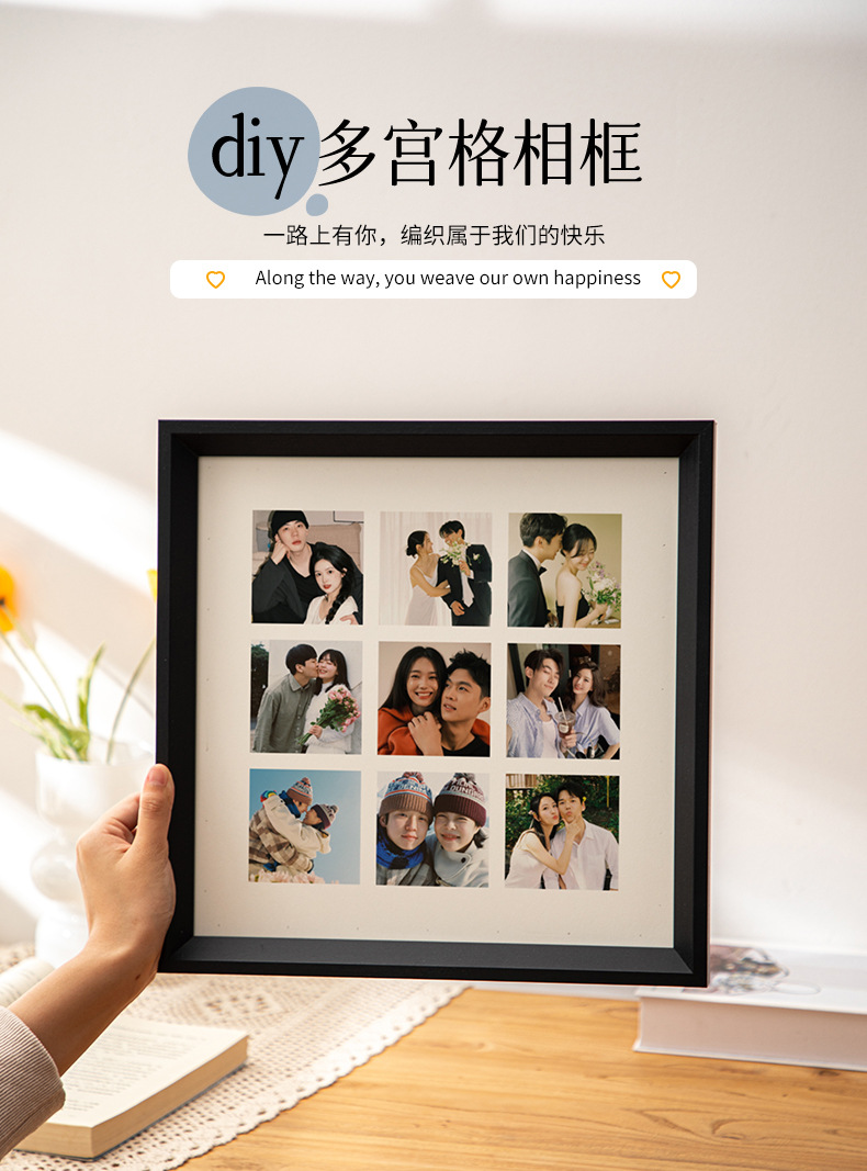 Jiugongge 단단한 나무 사진 프레임 테이블 48/36 Jiugongge diy 퍼즐 커플 폴라로이드 인쇄 기념 앨범 벽걸이스토어 가기