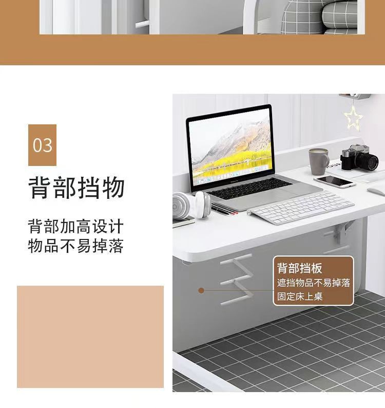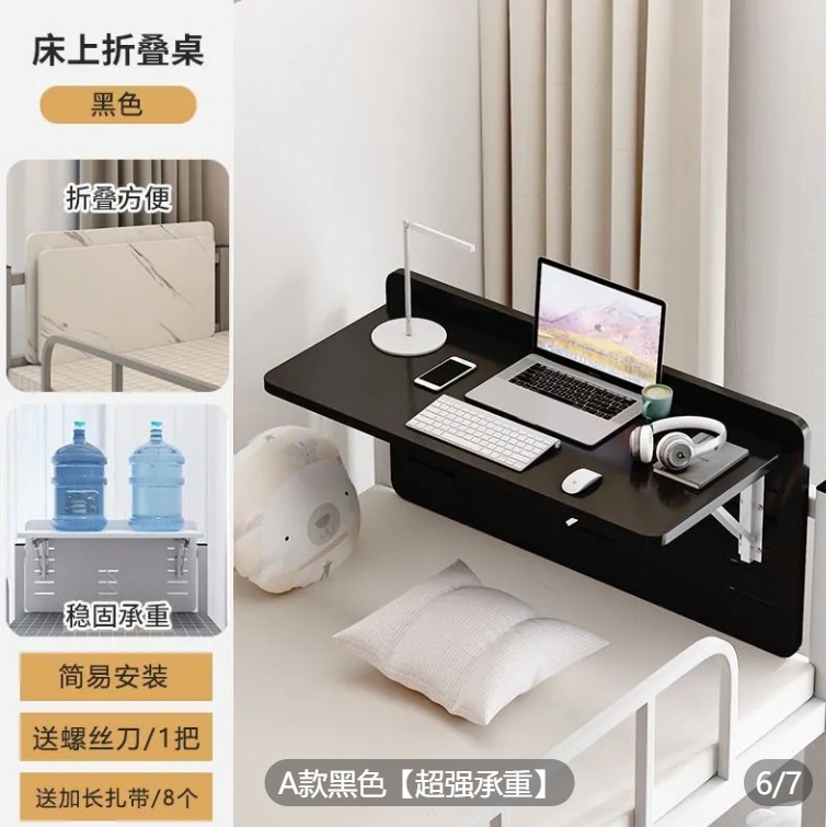 학생 기숙사 침대 테이블 접이식 컴퓨터 테이블 기숙사 책상 작은 테이블 이층 침대 침대 옆 측면 교수형 보관함