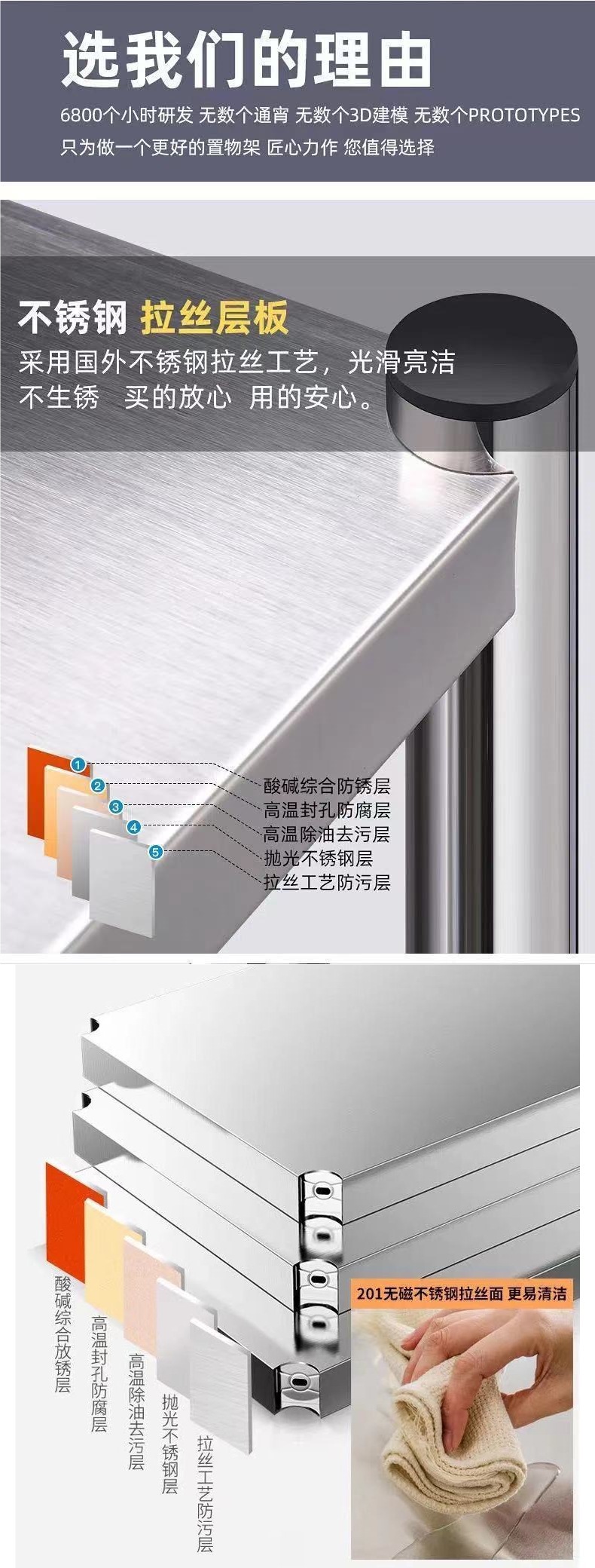 두꺼운 주방 스테인레스 스틸 바닥 스탠딩 선반 다층 스토리지 랙 선반 스토리지 랙 전자 레인지 냄비 랙 없음