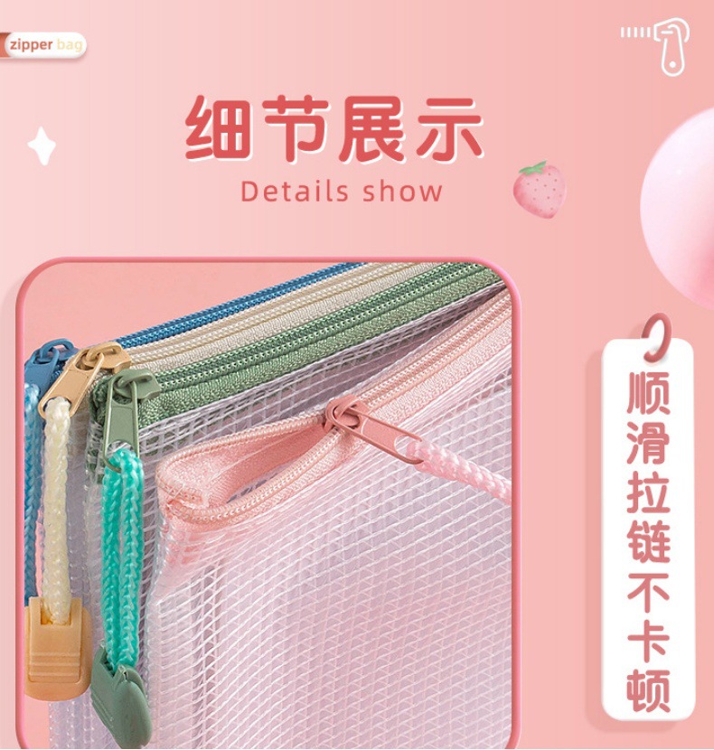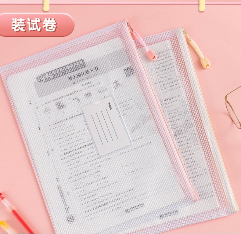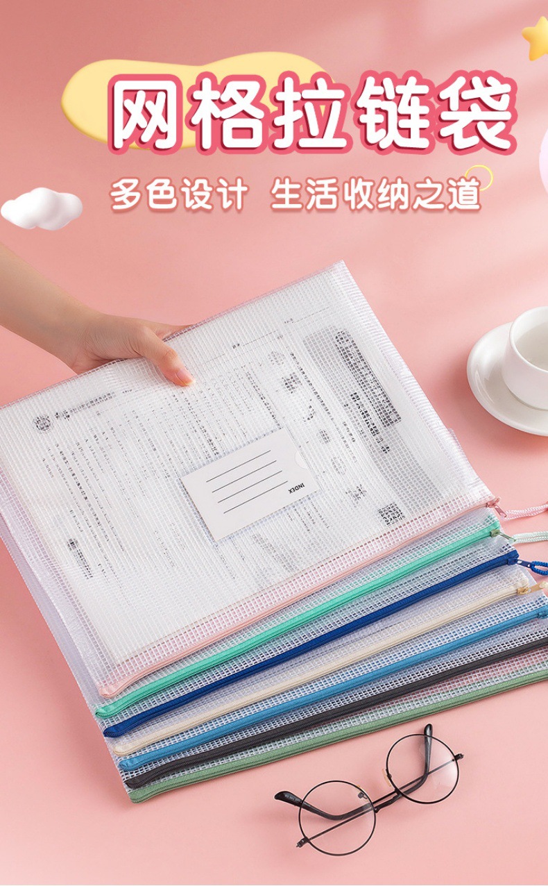 Morandi 그리드 지퍼 가방 방수 사무실 정보 가방 학생 시험지 보관 가방 인쇄 된 두꺼운 A4 파일 가방