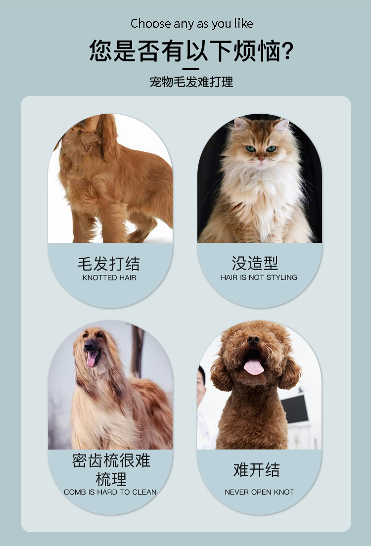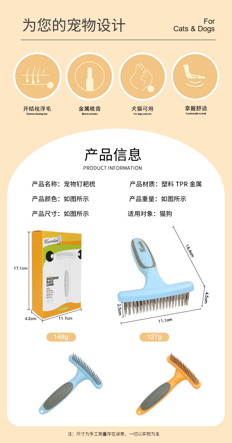 애완동물 용품 이중 행 네일 빗 개 빗 테디 애완 동물 바늘 빗 매듭 제거 브러시 뷰티 네일 빗