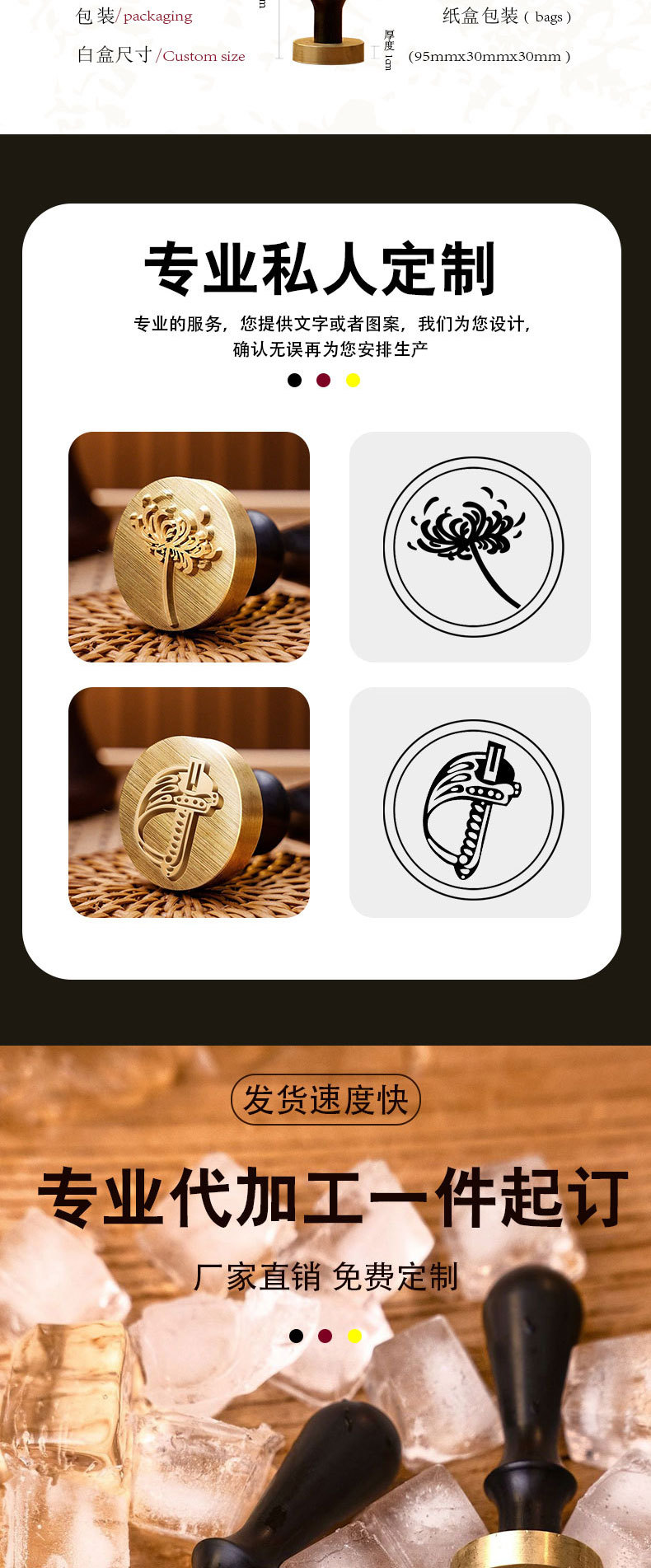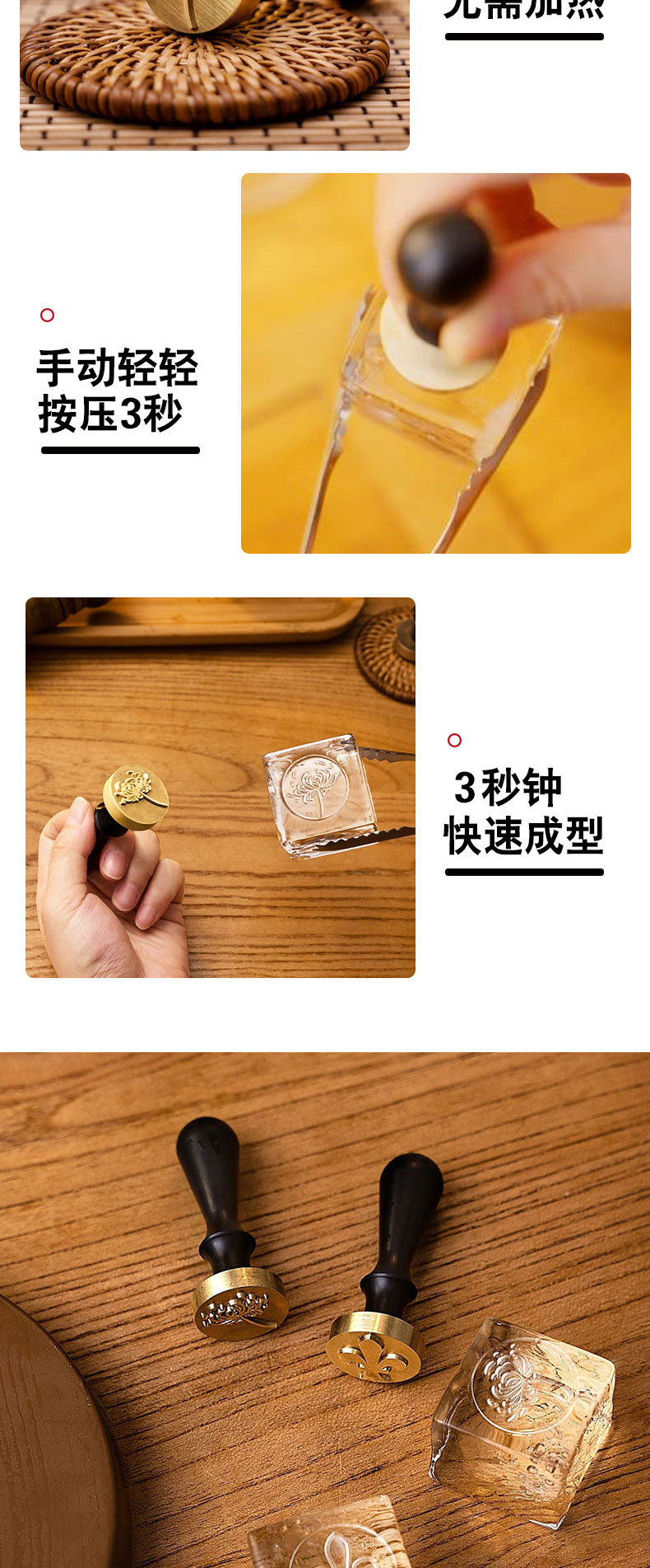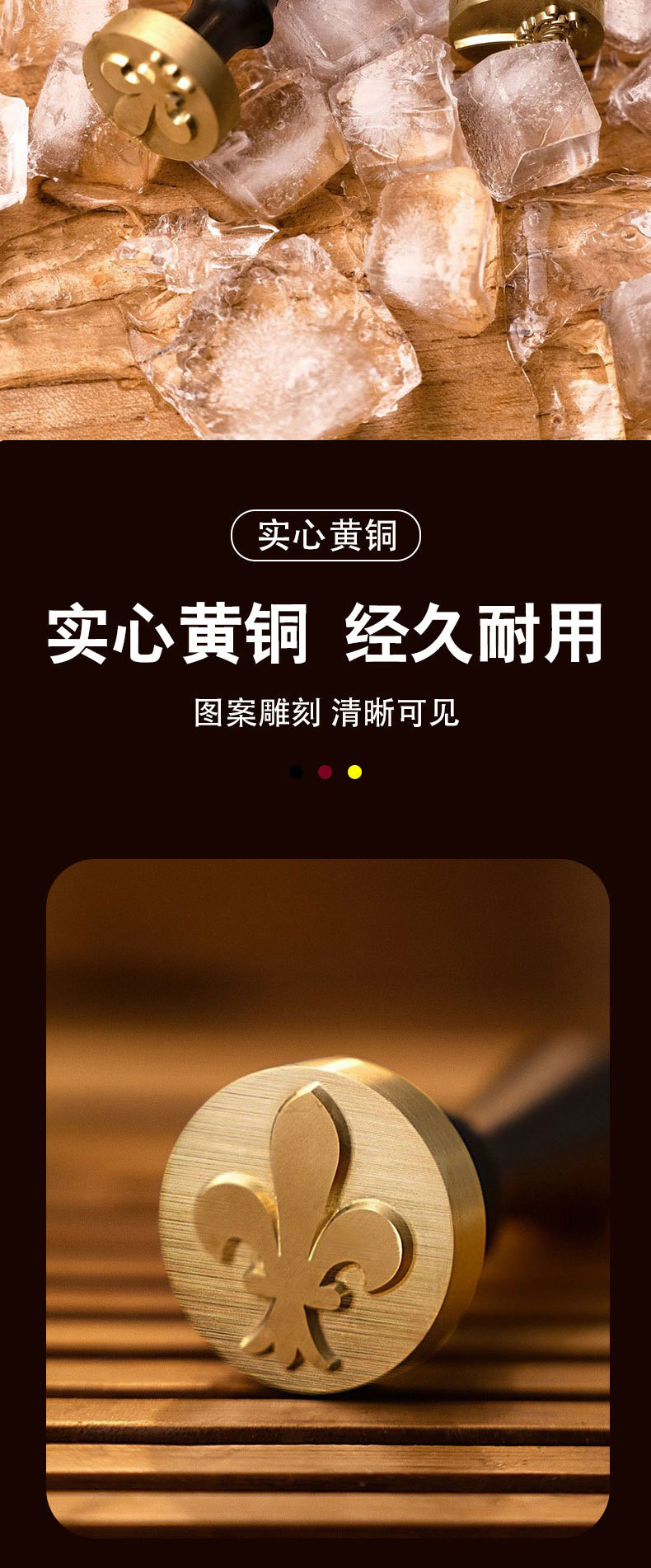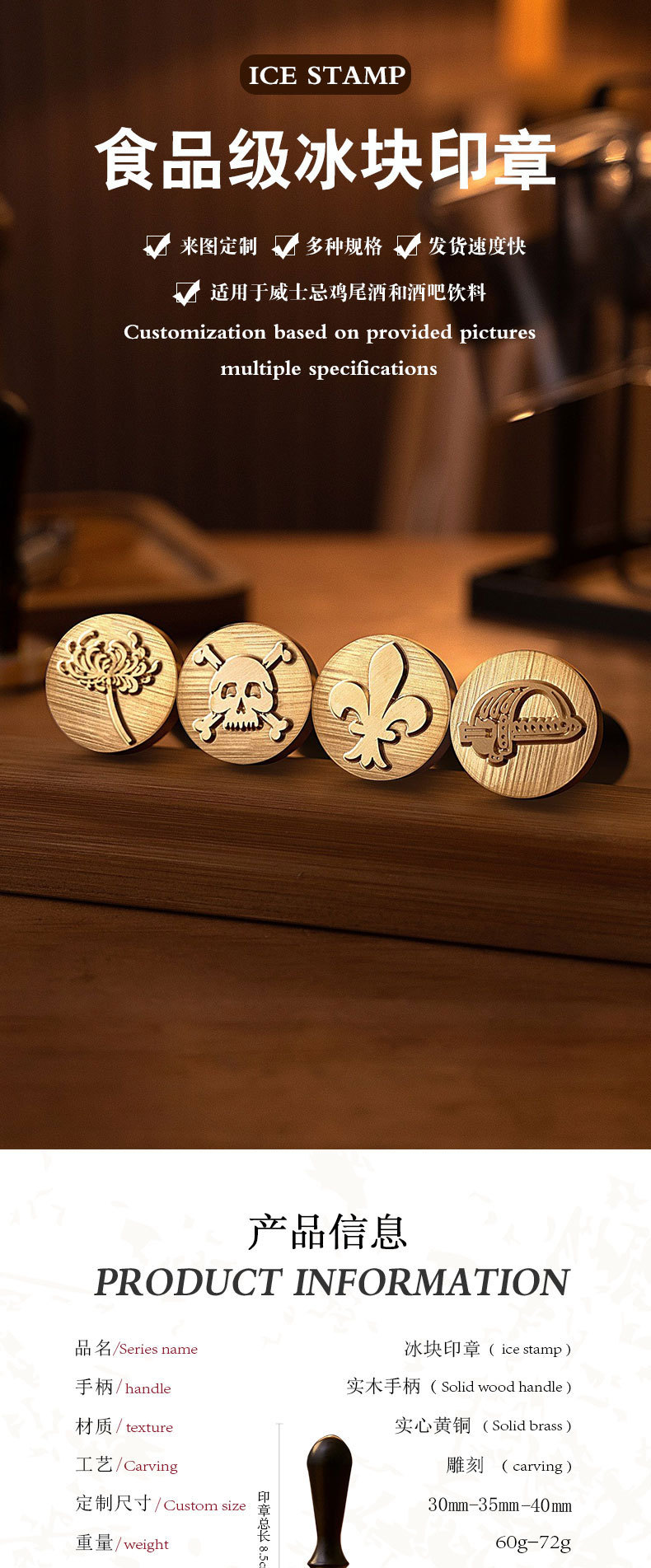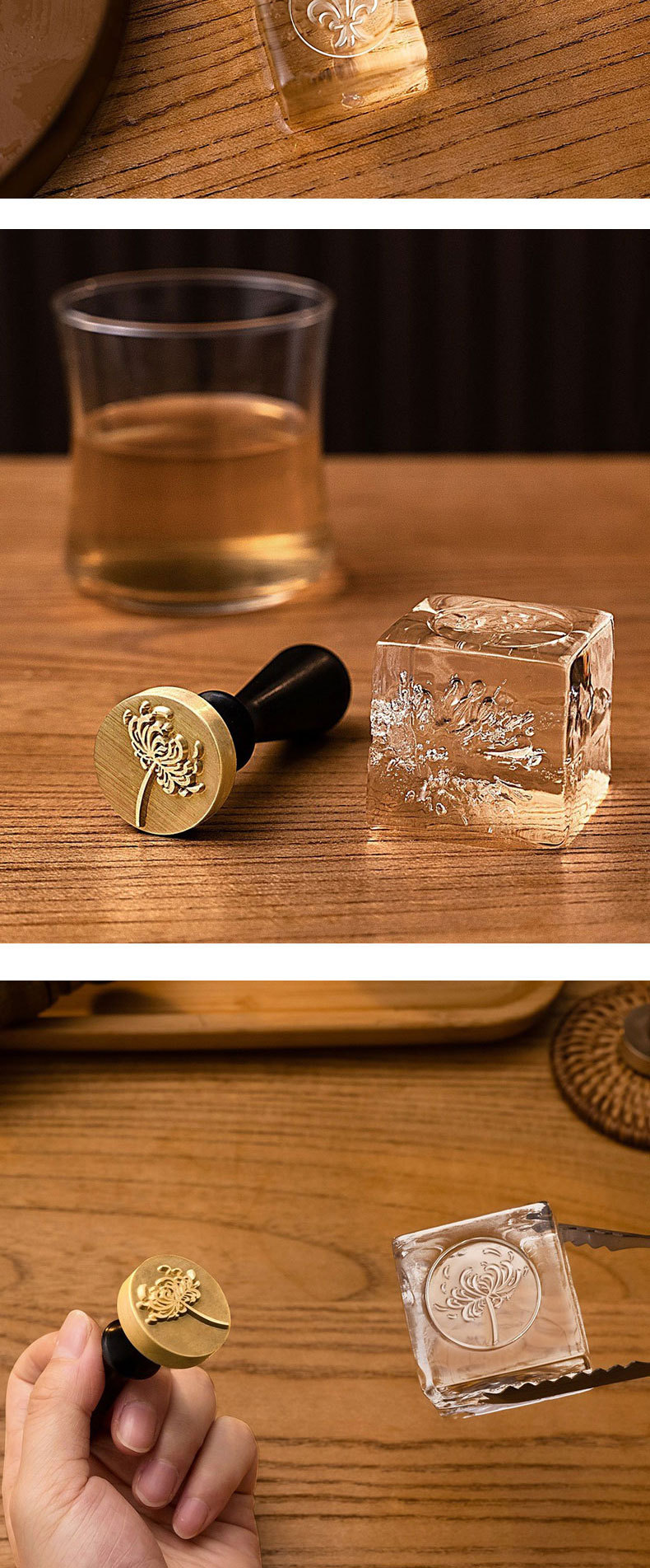 LFGB 3CM 식품 등급 아이스 큐브 케이크 구리 스탬프 아이리스 로즈 우드 핸들 아이스 큐브 스탬프 아이스 큐브 스탬프스토어 가기