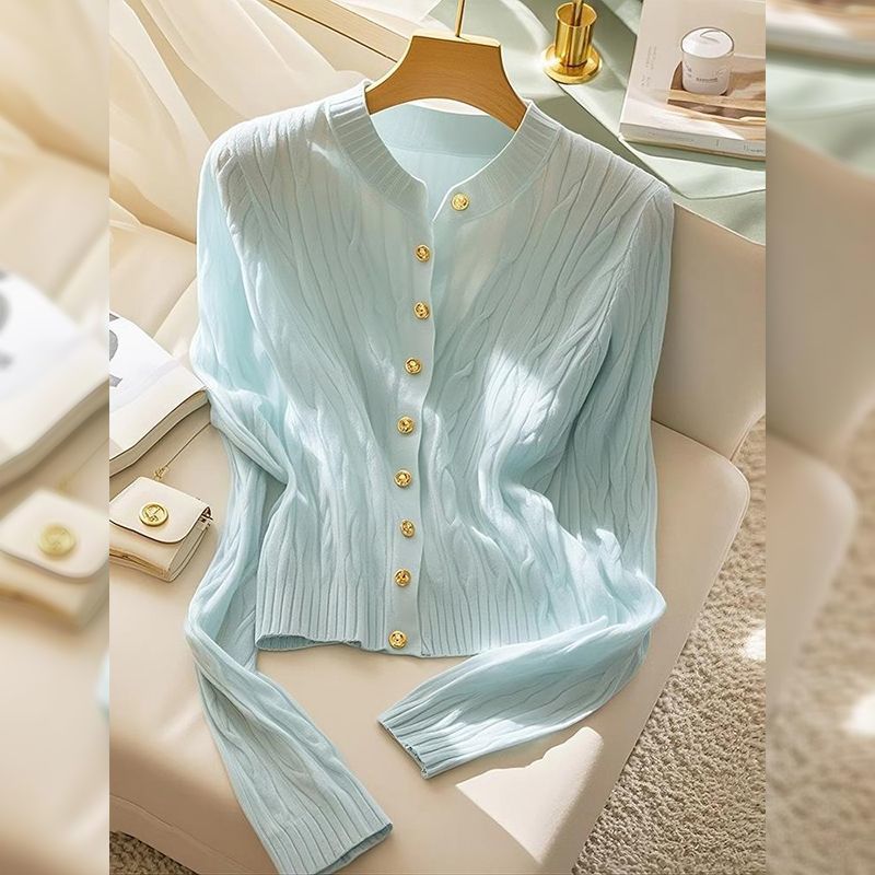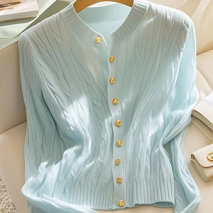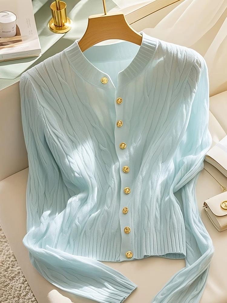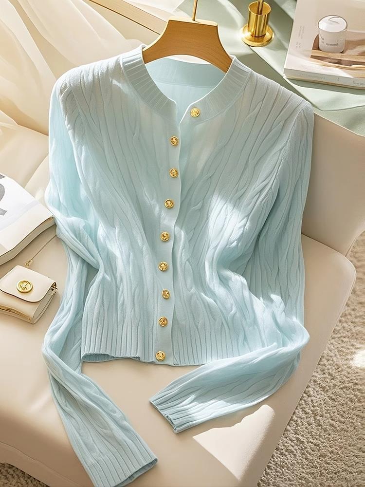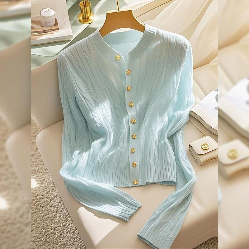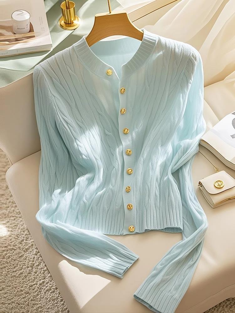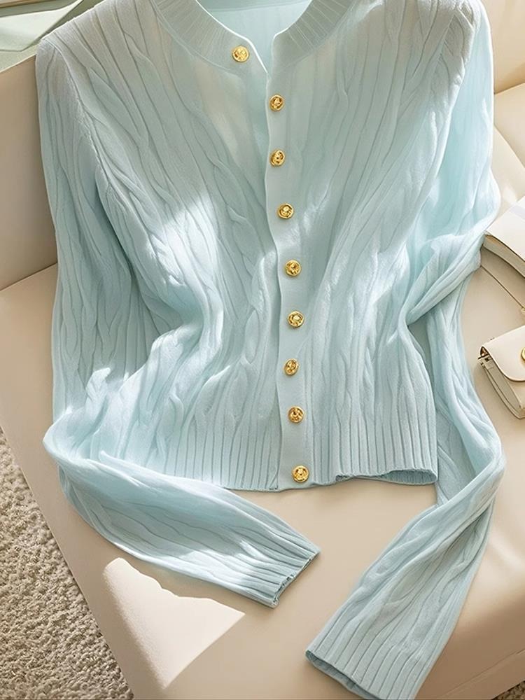 여성을위한 Xiaoxiangfeng 민트 블루 트위스트 스웨터 2025 이른 봄 새로운 한국 스타일 게으른 스웨터 카디건 재킷
