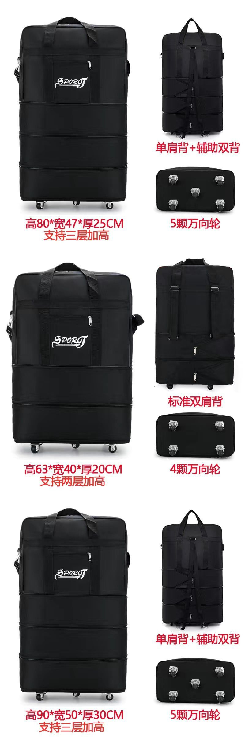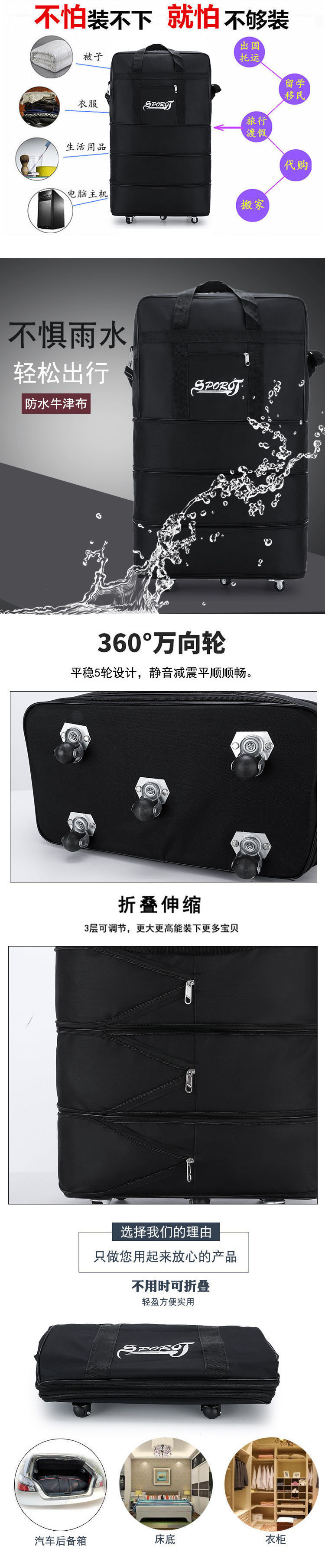 방수 접이식 항공 체크 가방, 여성용 배낭, 대용량 수납 가방, 범용 바퀴, 남성용 외출용 핸드백스토어 가기