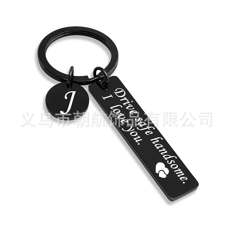 남성용 인기 스테인레스 스틸 키체인 안전 운전 26 글자 작은 원형 휴대용 펜던트스토어 가기