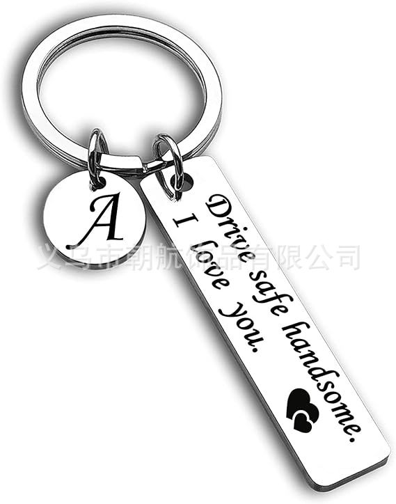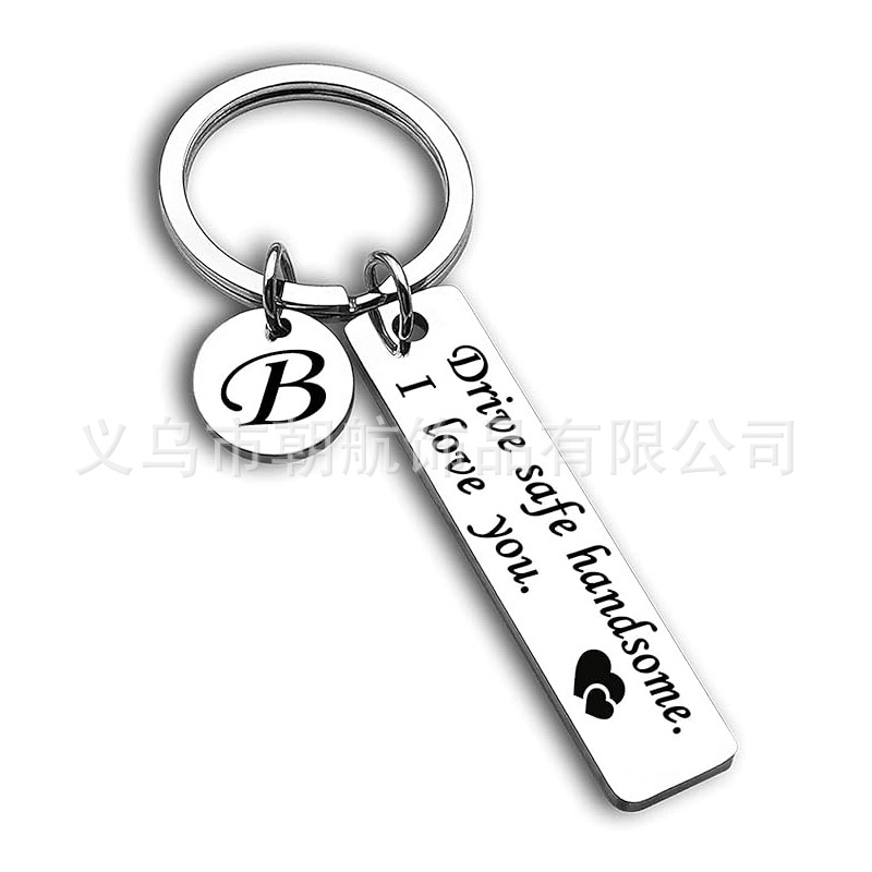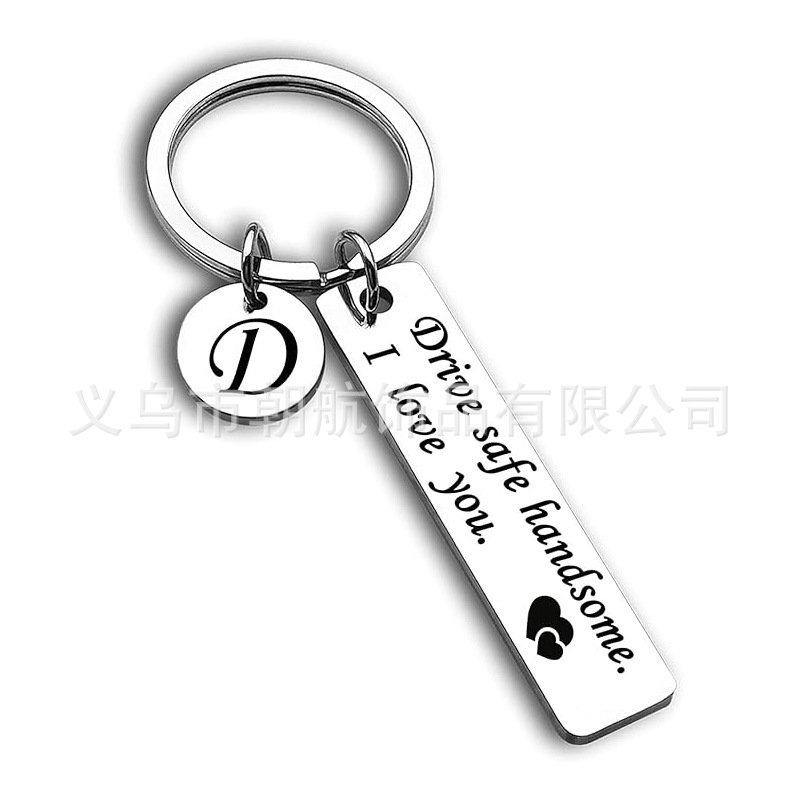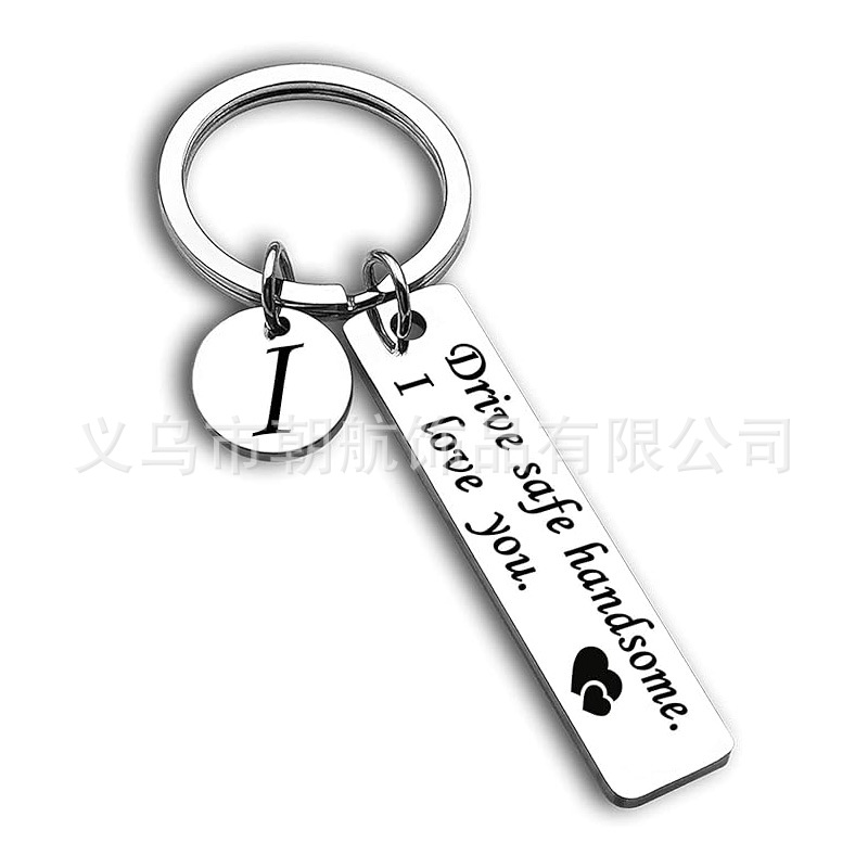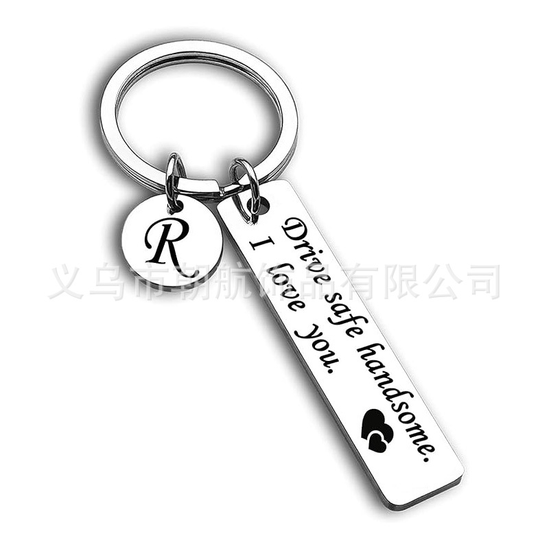 남성용 인기 스테인레스 스틸 키체인 안전 운전 26 글자 작은 원형 휴대용 펜던트