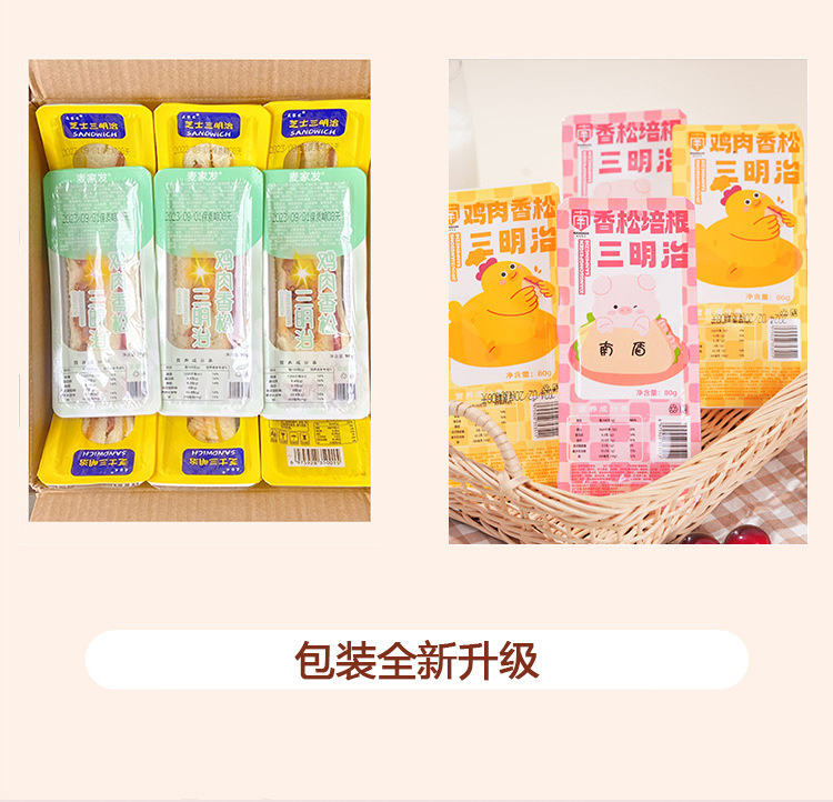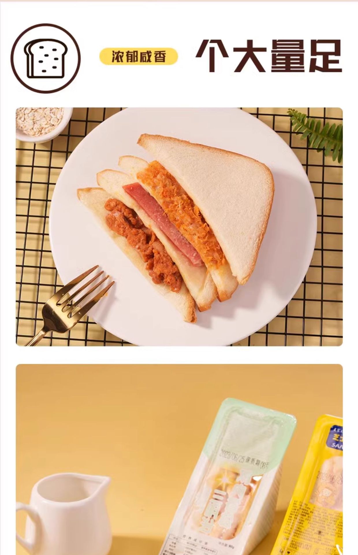 아침 치킨 샌드위치, 햄, 치즈, 미트 플로스 맛 샌드위치 토스트 빵, 게으른 사람들을 위한 바로 먹을 수 있는 야식 스낵, 한 상자