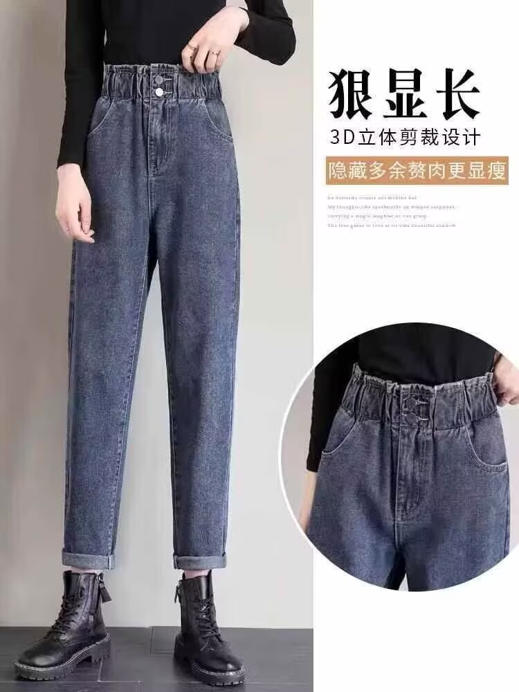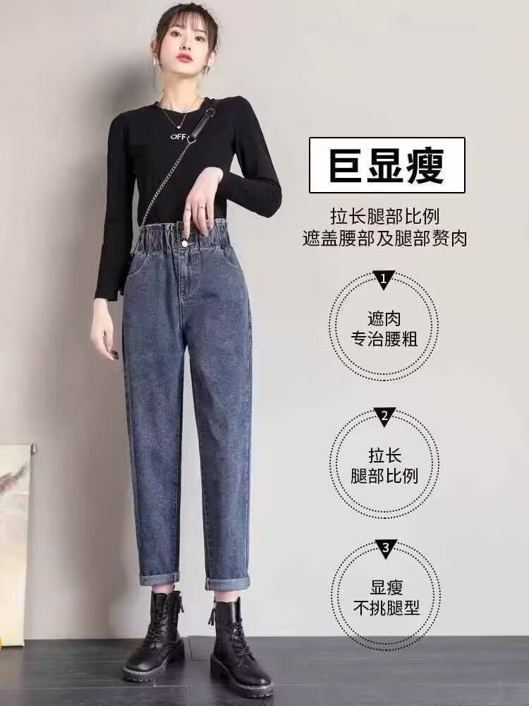 높은 허리 할란 청바지 여성의 2025 가을 새로운 느슨한 슬리밍 스트레이트 당근 토레 바지 여성 봄과 가을스토어 가기
