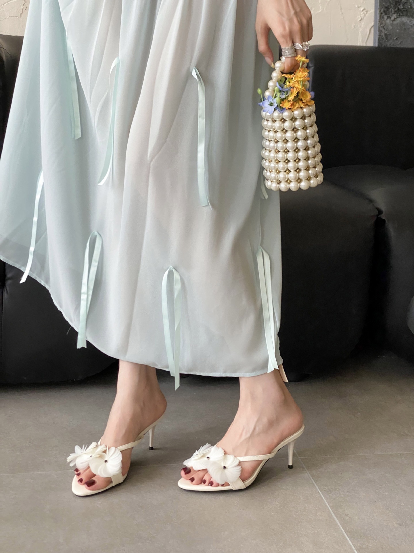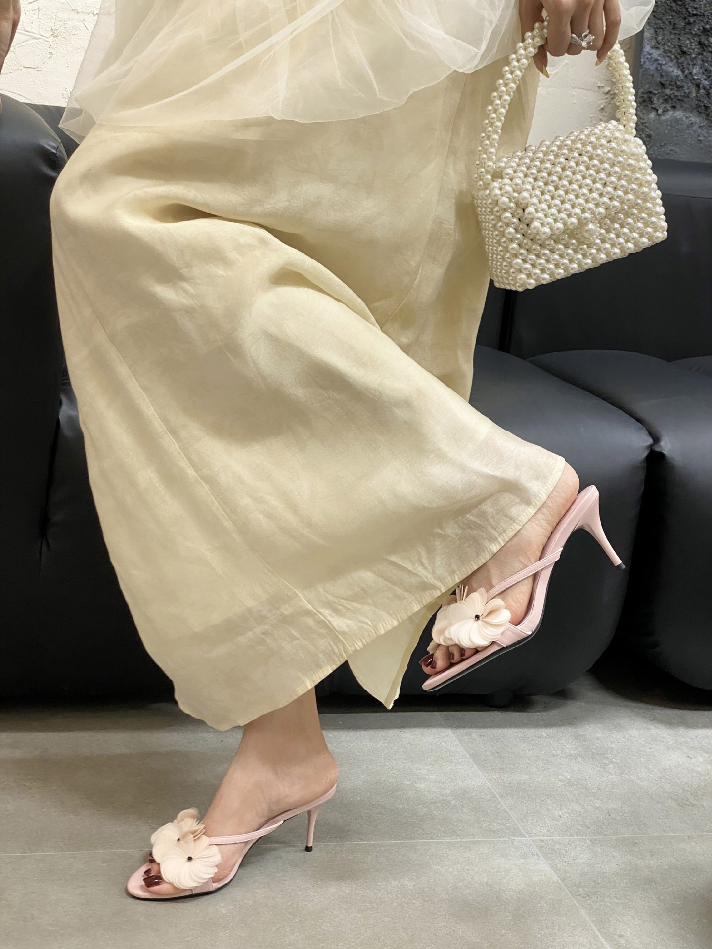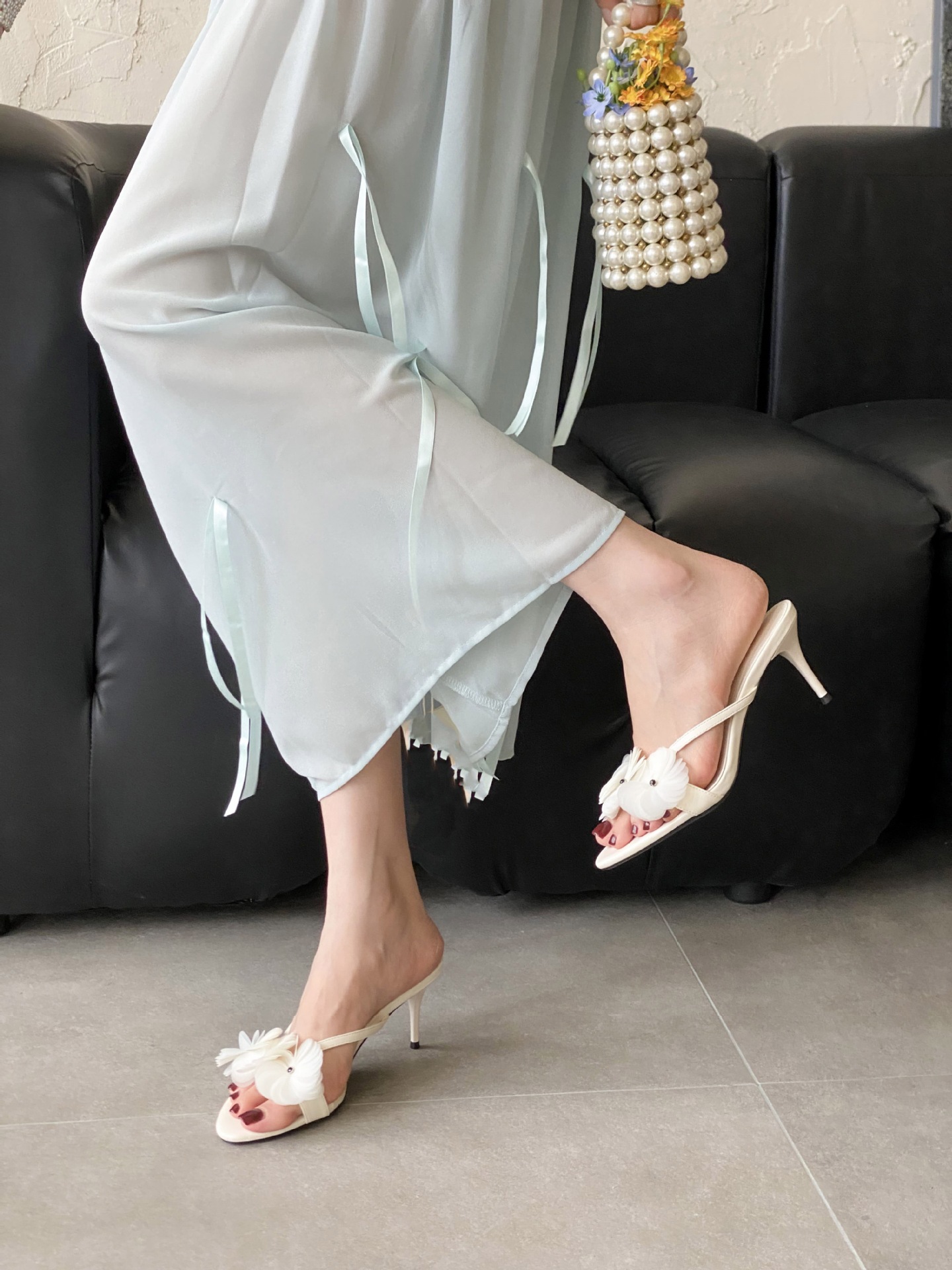 2025 봄 신상 뾰족한 발가락 스틸레토 하이힐, 슬림한 프렌치 패션, 섹시하고 아름다운 오픈 토 여성 슬리퍼