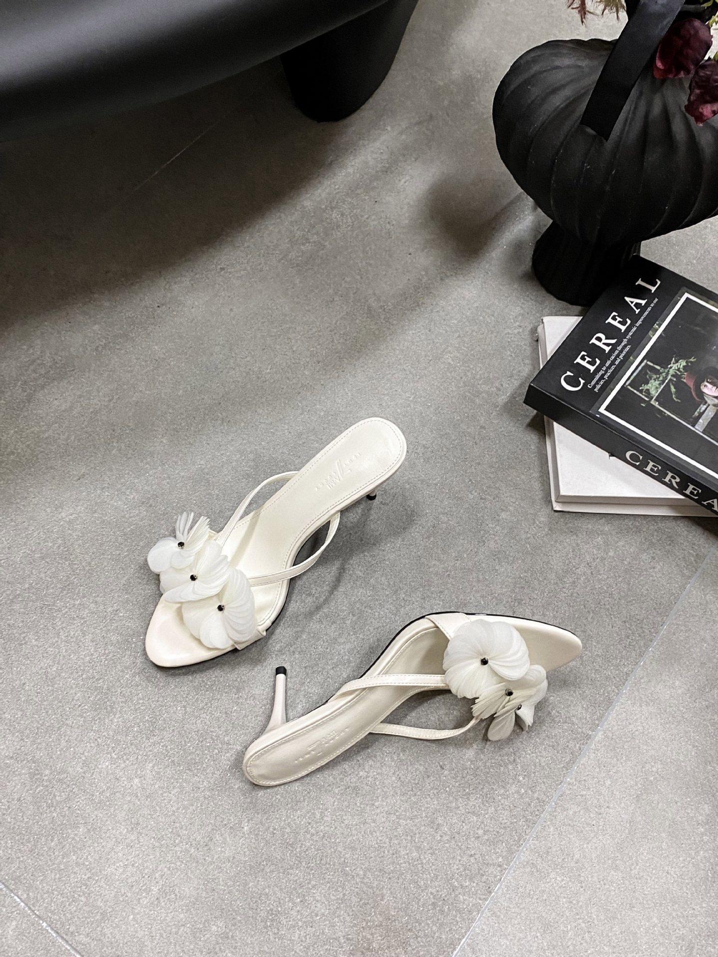 2025 봄 신상 뾰족한 발가락 스틸레토 하이힐, 슬림한 프렌치 패션, 섹시하고 아름다운 오픈 토 여성 슬리퍼스토어 가기
