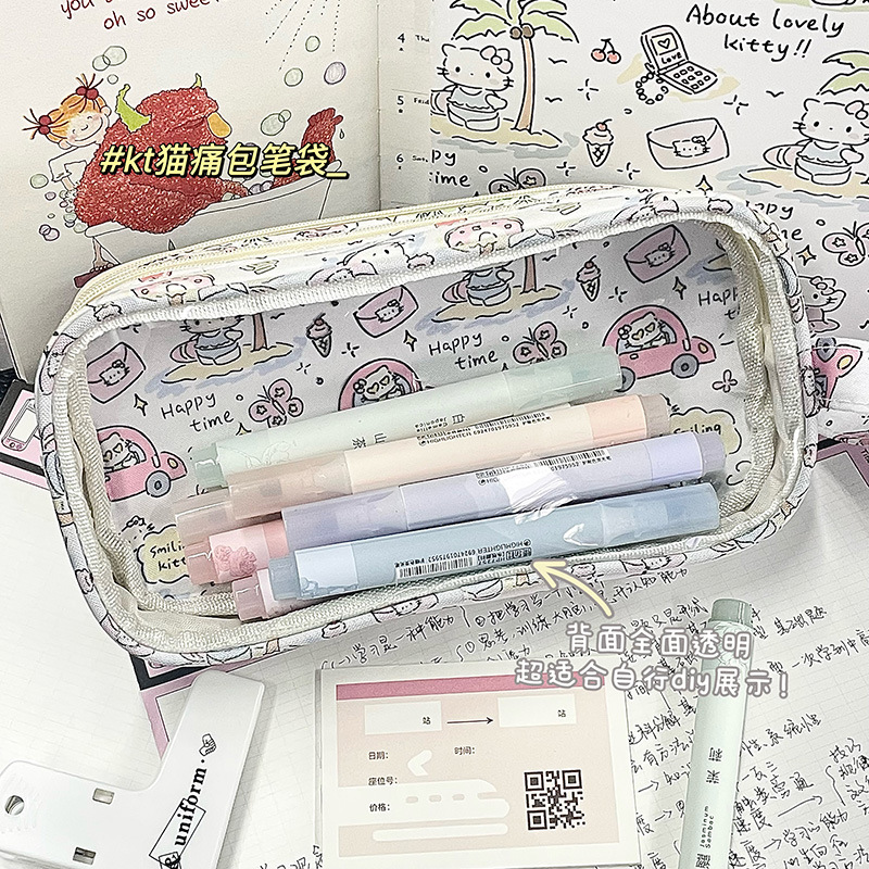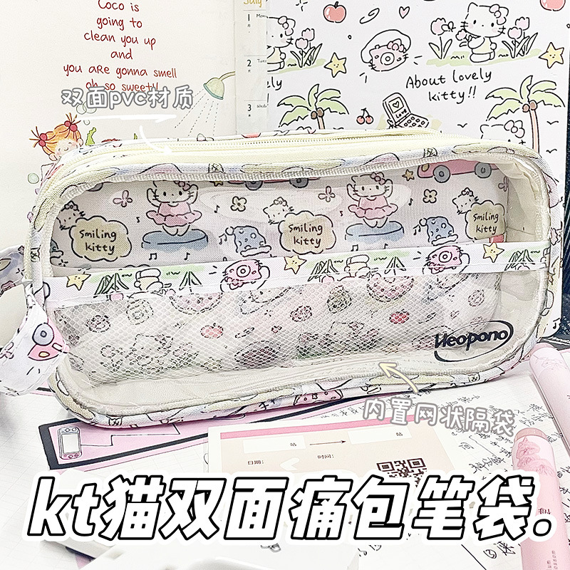 Ins 소녀 대용량 KT 고양이 양면 통증 가방 투명 고가치 연필 가방 학생 문구 보관 가방 연필 가방