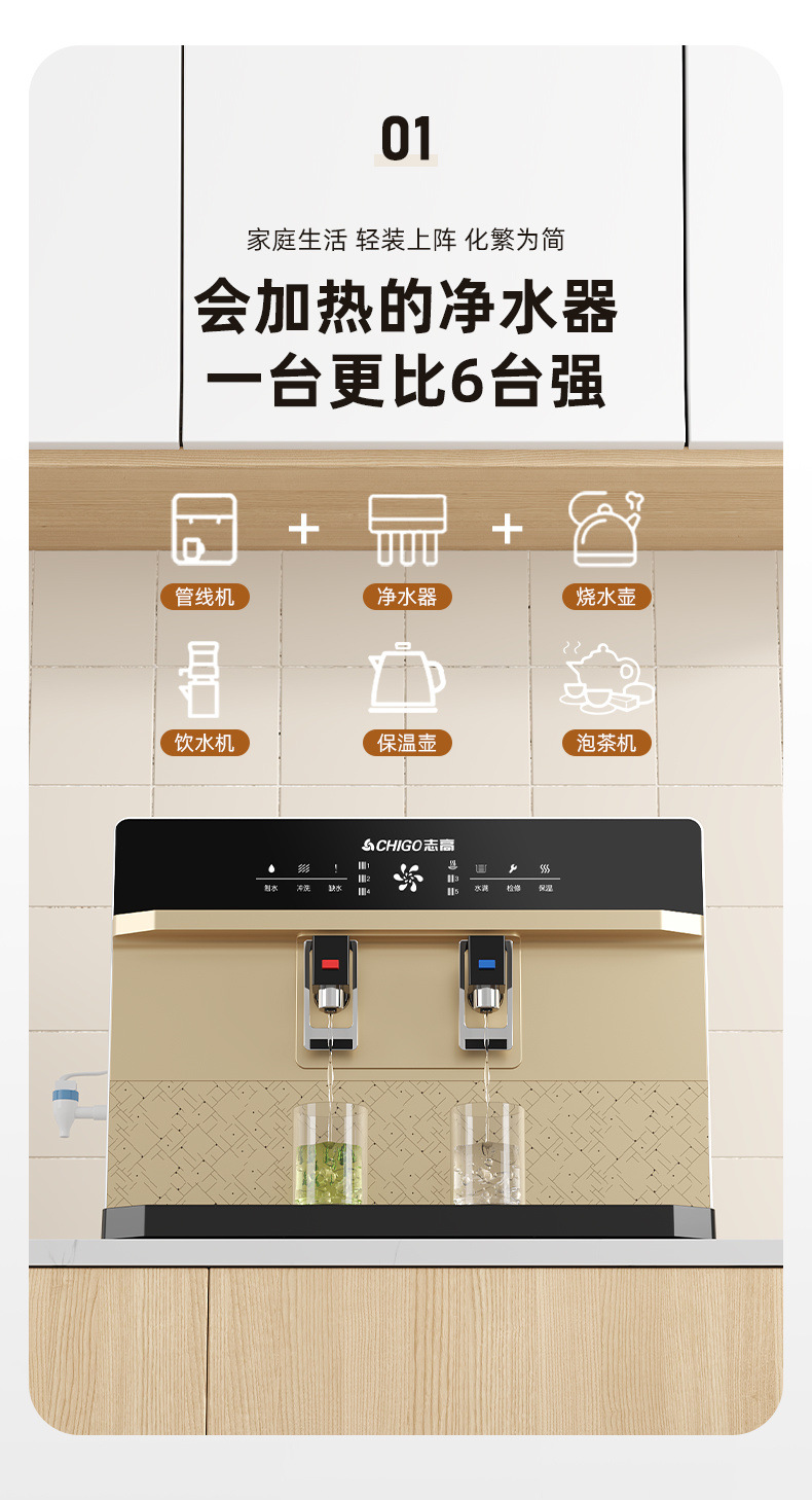 Chigo HR103 정수기 난방 올인원 가정용 직접 마시는 RO 정수기 주방 벽 장착 데스크탑 워터 디스펜서