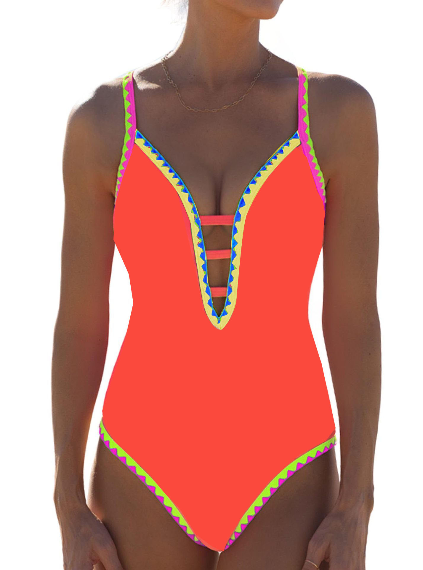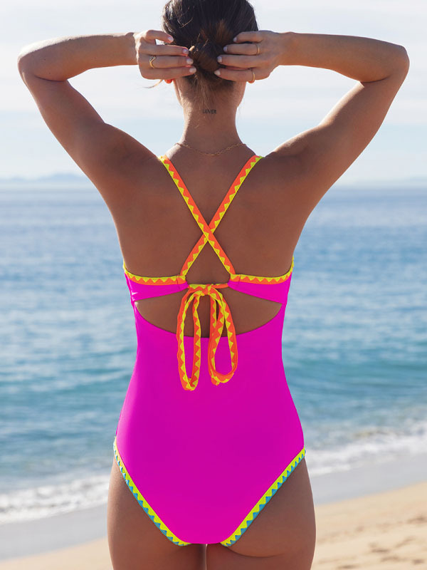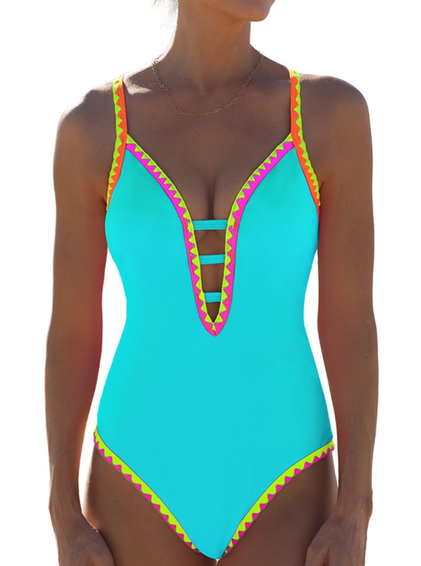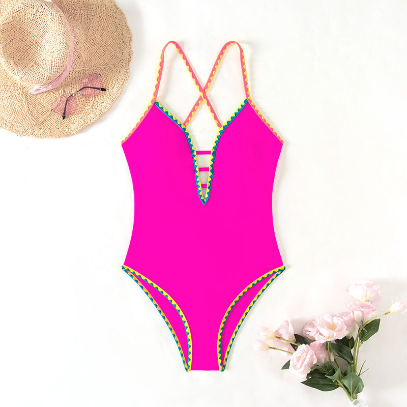 2025 국경을 넘는 새로운 아마존 속이 빈 타이트 백리스 섹시한 단색 원피스 수영복 여성용 비키니
