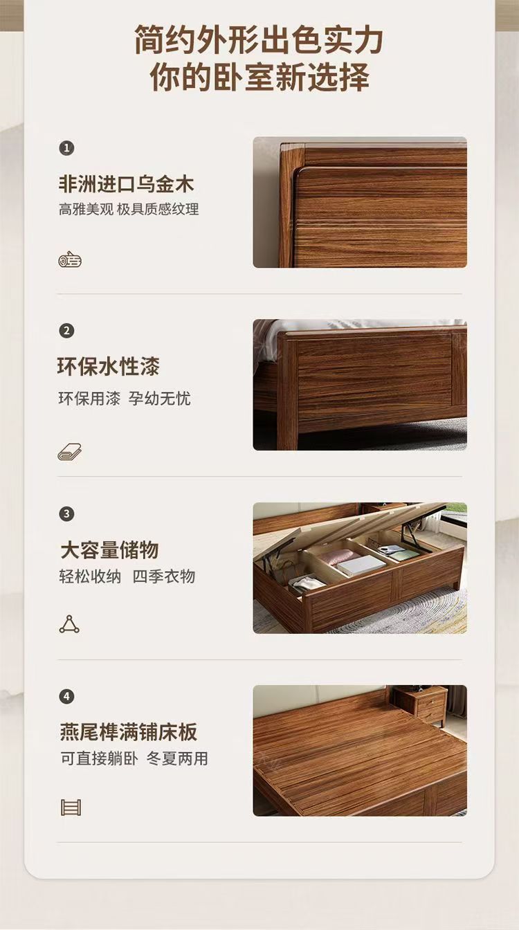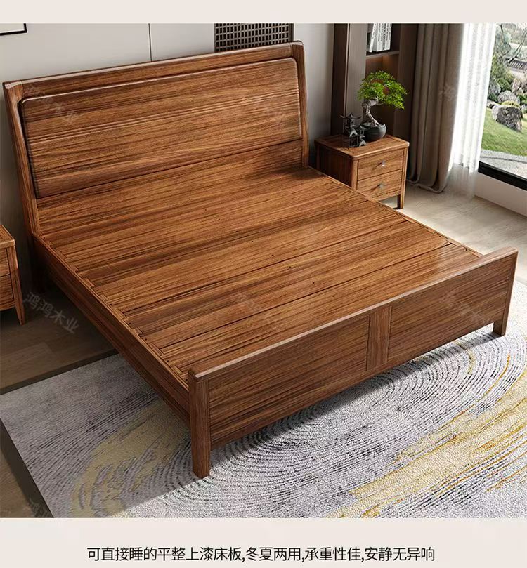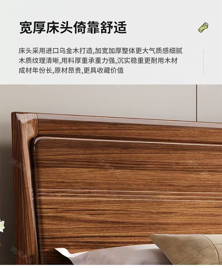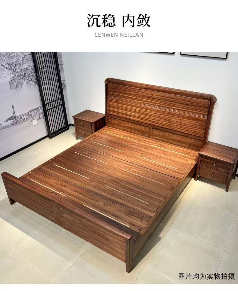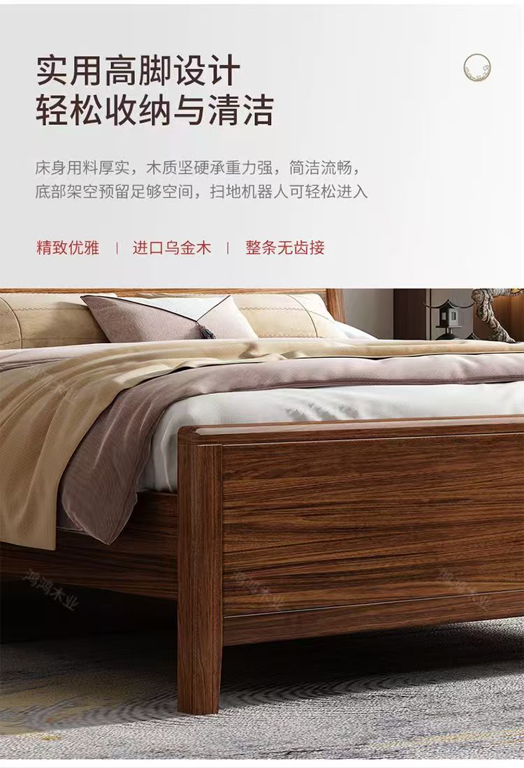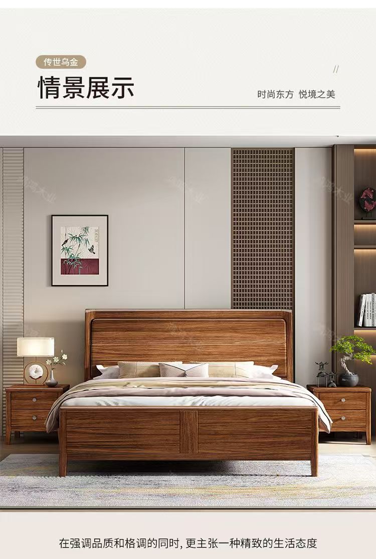새로운 중국 스타일 에보니 나무 단단한 나무 침대 1.8 m 더블 침대 현대 간단한 1.5 m 웨딩 침대 마스터 침실 높은 상자 저장 침대스토어 가기