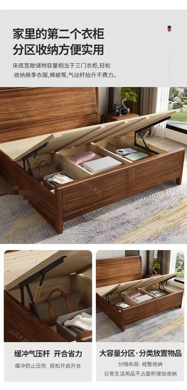 • 1.8m 프레임 원목 침대 [표준 사일런트 침대판]