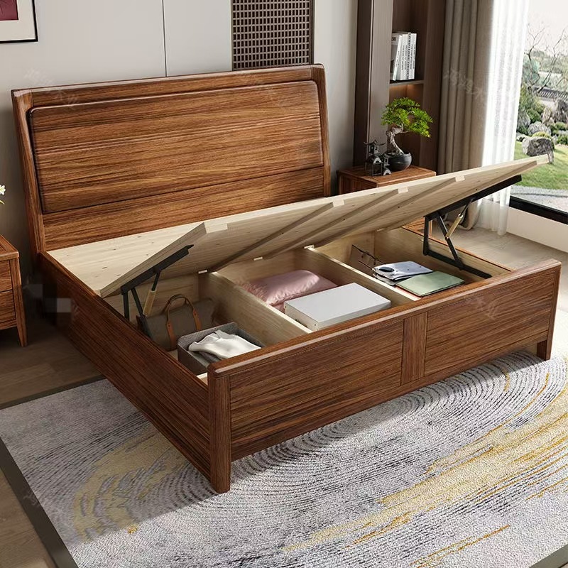 새로운 중국 스타일 에보니 나무 단단한 나무 침대 1.8 m 더블 침대 현대 간단한 1.5 m 웨딩 침대 마스터 침실 높은 상자 저장 침대