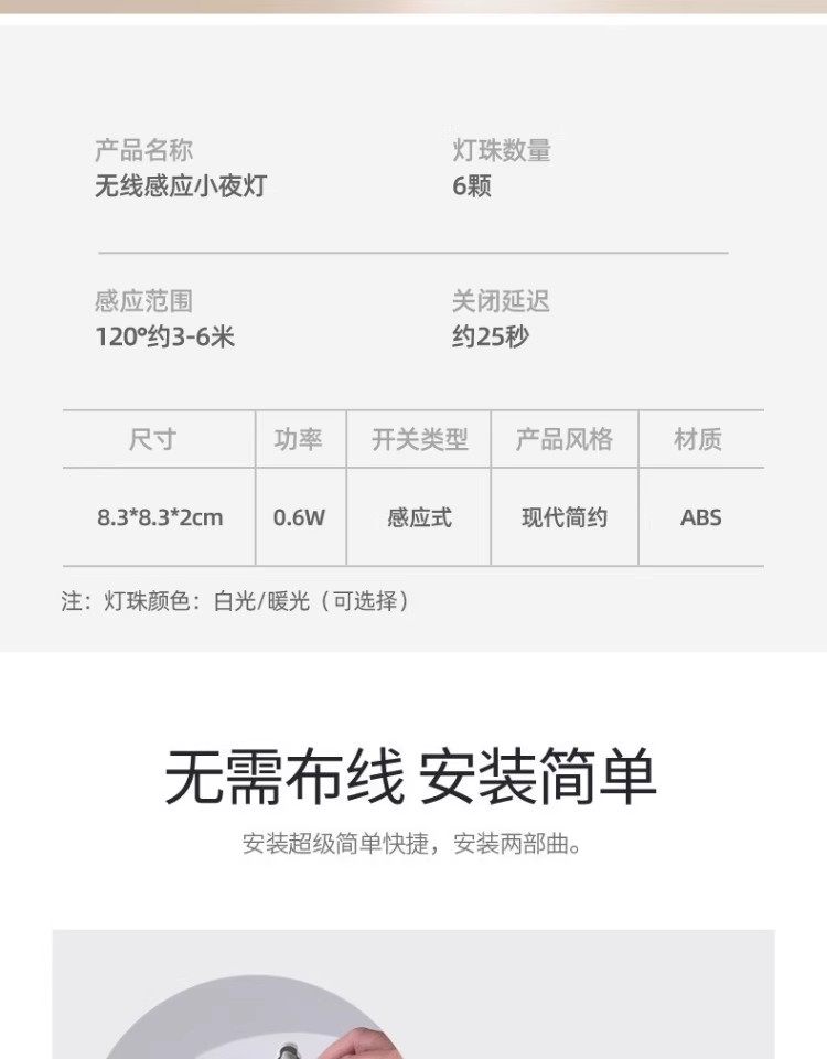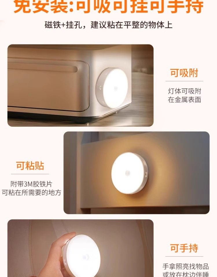 • 둥근 백색광 충전 인체 유도 업그레이드 모델