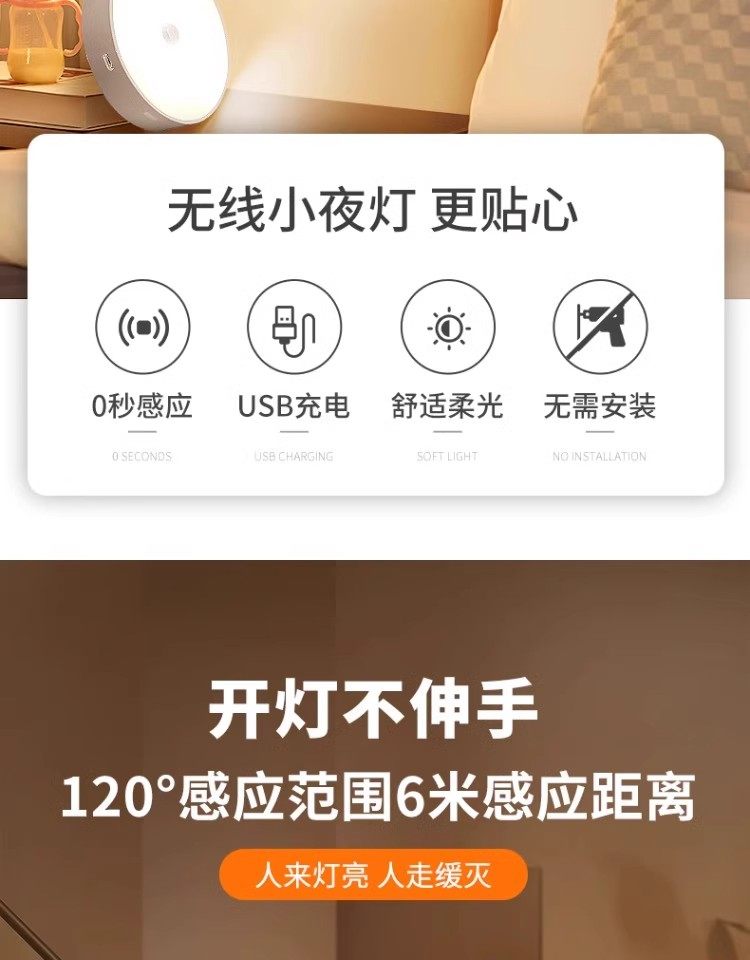 • 둥근 노란색 빛 충전 인체 유도 업그레이드 모델
