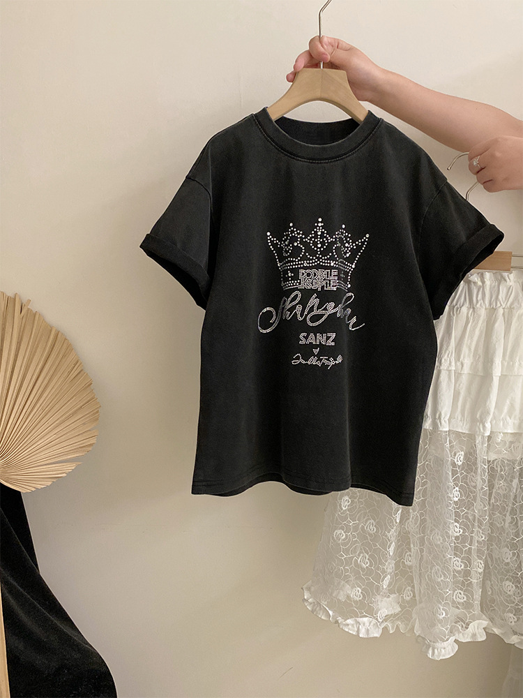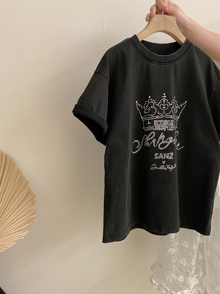 여자 한국식 여름 새 느슨한 편지 반팔 티셔츠 2025 올매치 플라워 레이스 원피스 스타일 투피스 세트스토어 가기