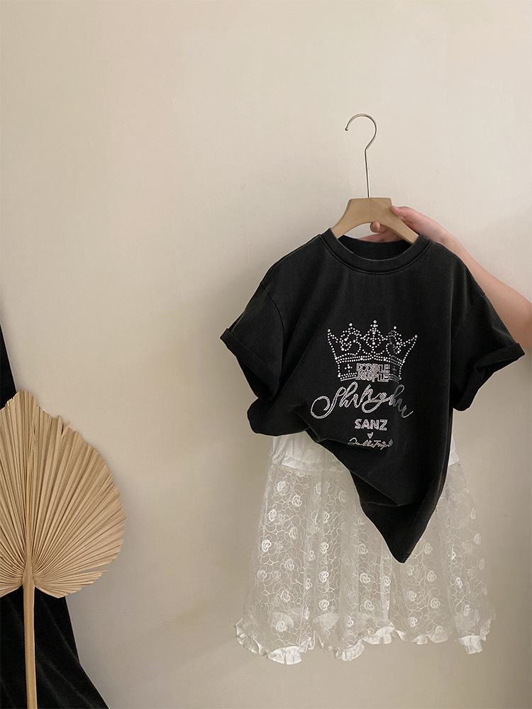 여자 한국식 여름 새 느슨한 편지 반팔 티셔츠 2025 올매치 플라워 레이스 원피스 스타일 투피스 세트